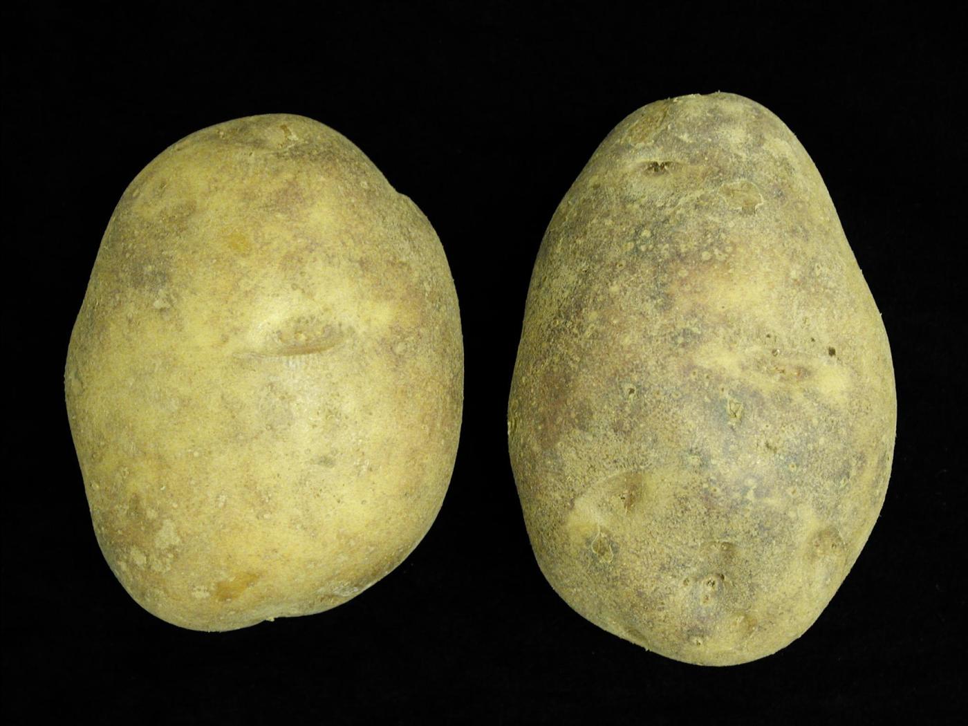 Tubercule : présence de taches vertes à la surface des tubercules. Lors d’une exposition intense et prolongée à la lumière, le verdissement devient vert foncé, presque noir. Sur les tubercules à pelure rouge, les taches apparaissent pourpres.