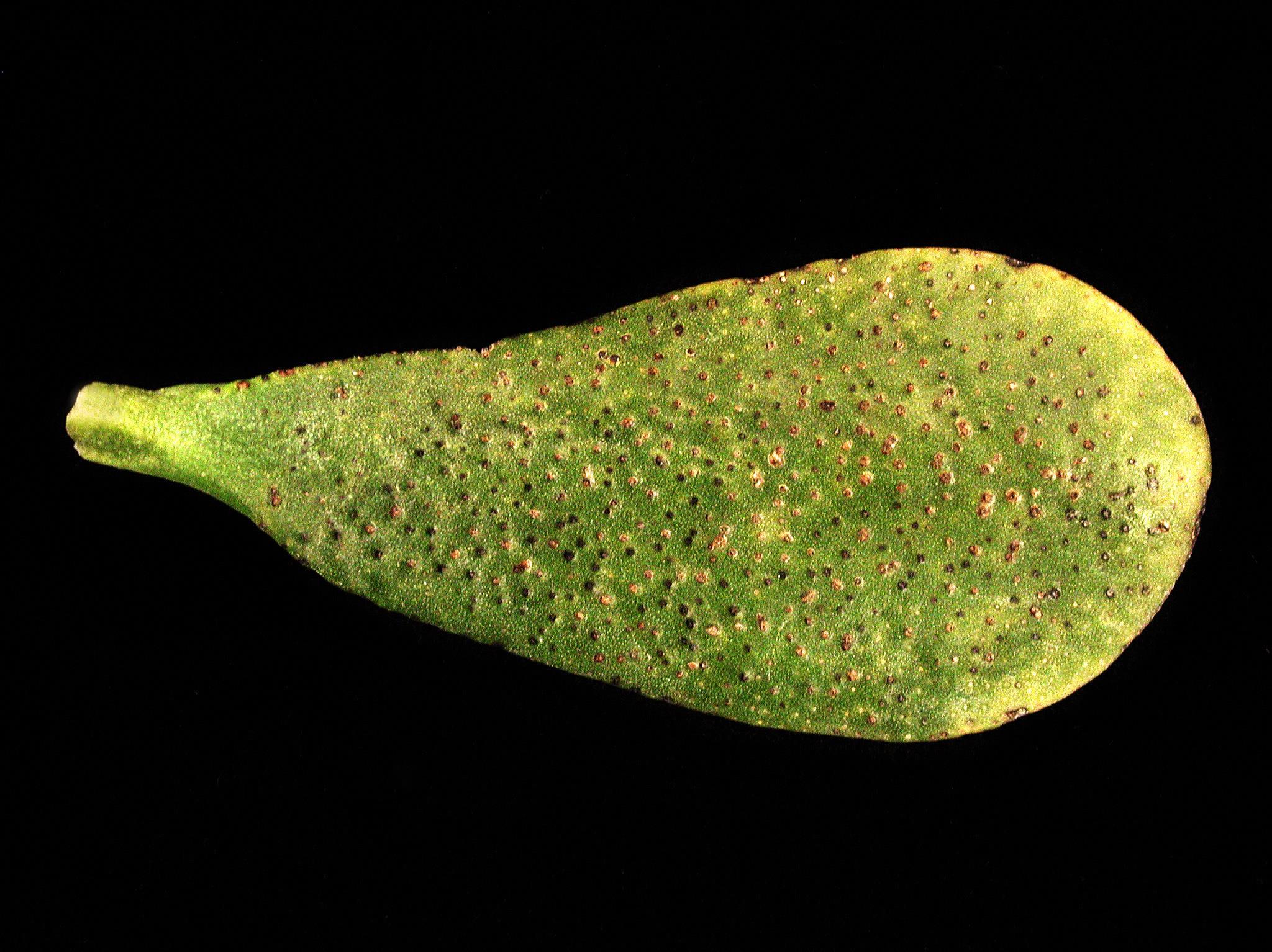 Légende: Nombreuses petites taches brunes sur feuille de crassula