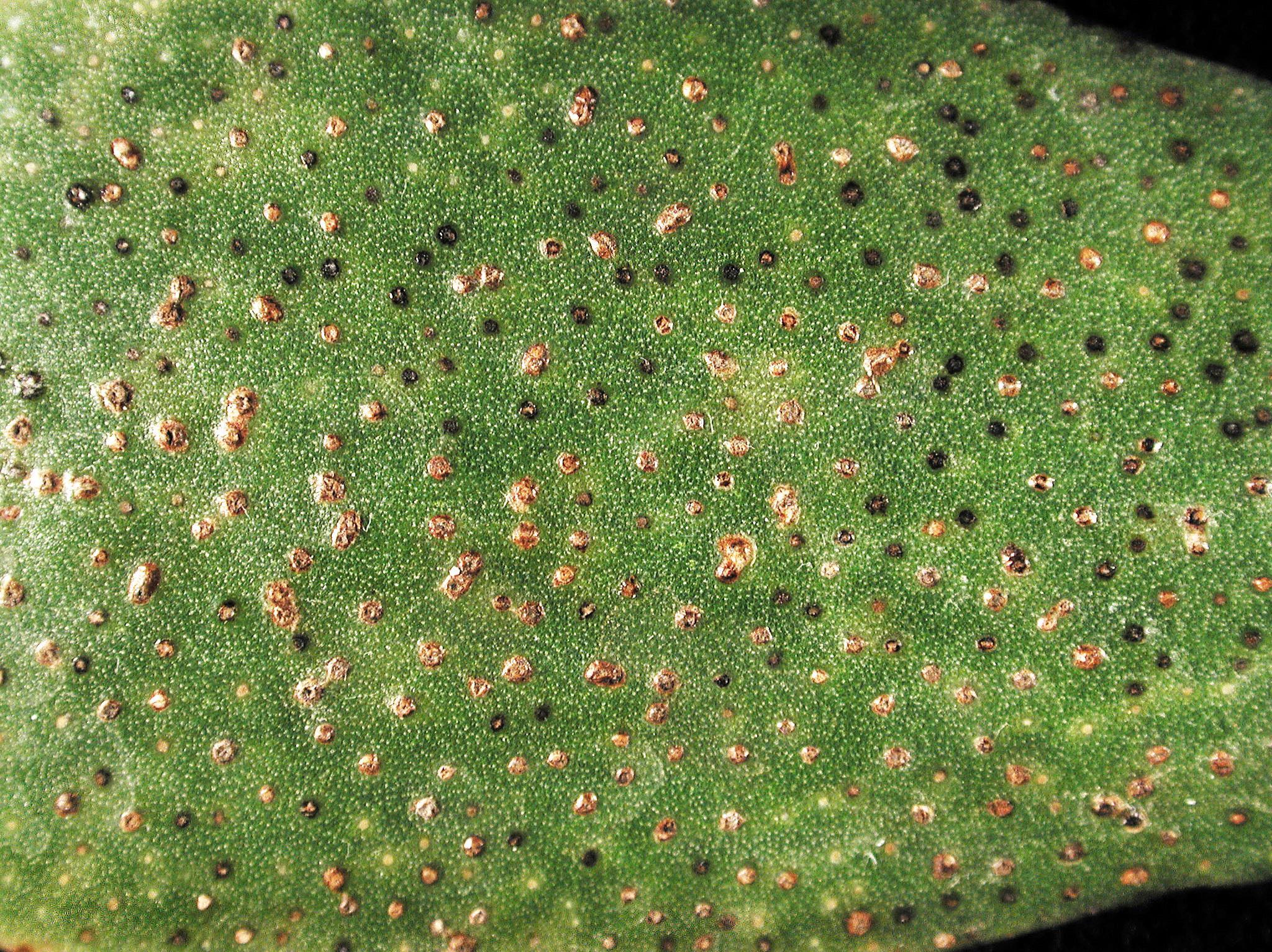 Légende: Nombreuses petites taches brunes sur feuille de crassula