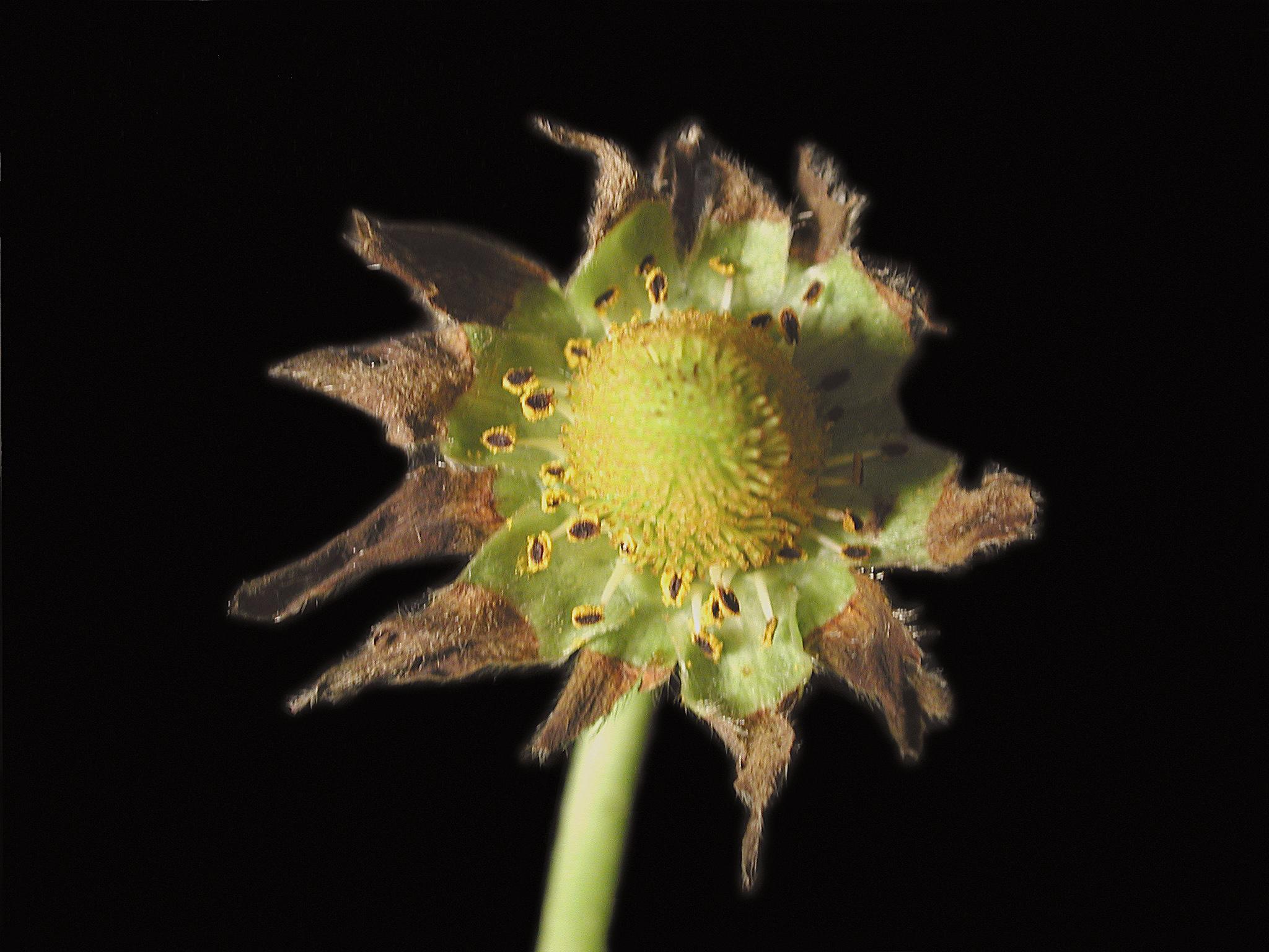 Description: Sur des fraisiers cultivés en serre expérimentale, les sépales d’une fleur brunissent à leur extrémité puis sèchent. Sur les mêmes plants, les jeunes feuilles montraient une brûlure apicale ainsi que des déformations et du gaufrage du limbe (non visible ici). Ces dommages sont des symptômes caractéristiques d’une carence en calcium.