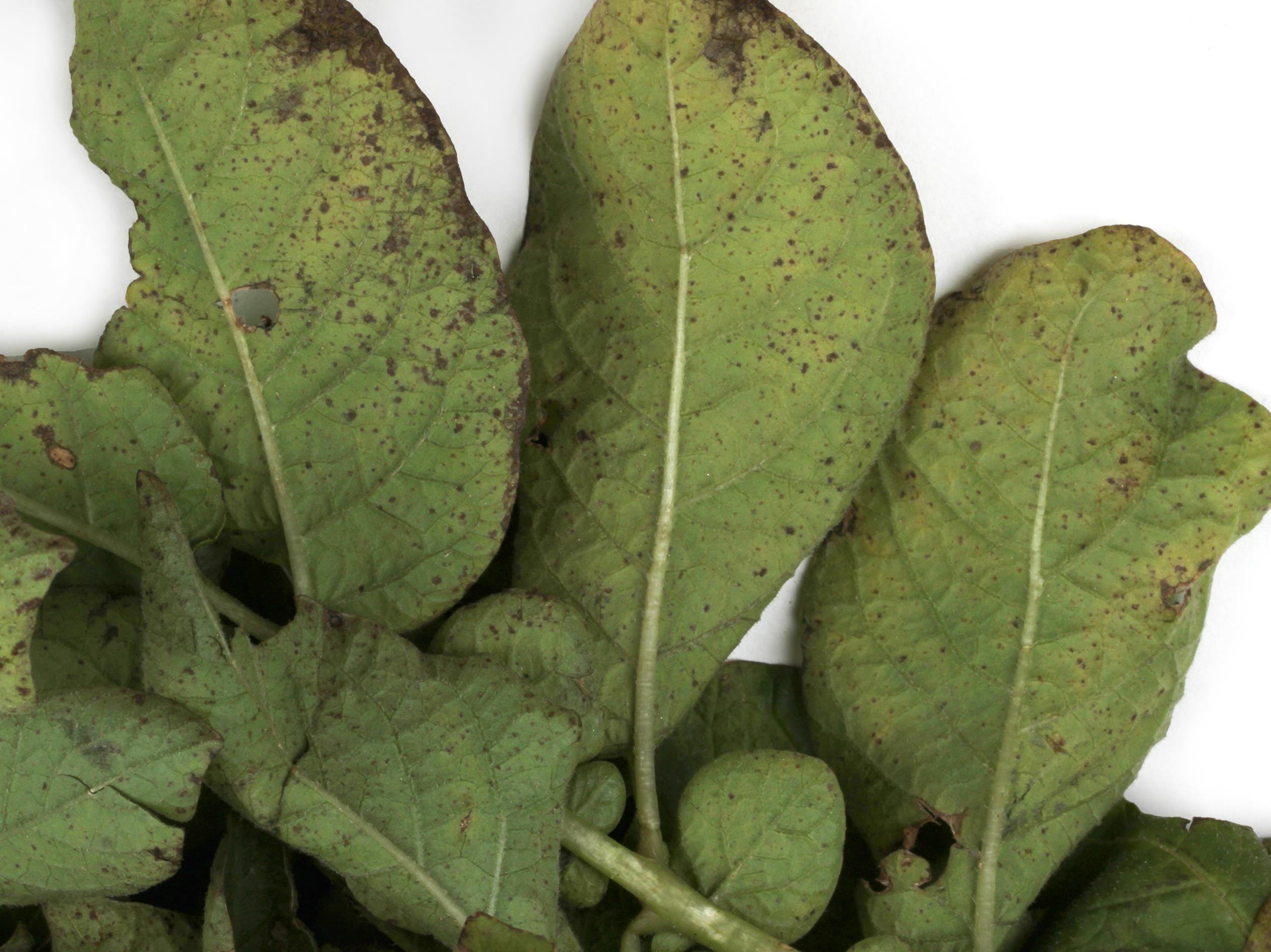 Légende: Fines taches brunes à la face inférieure des folioles de pomme de terre