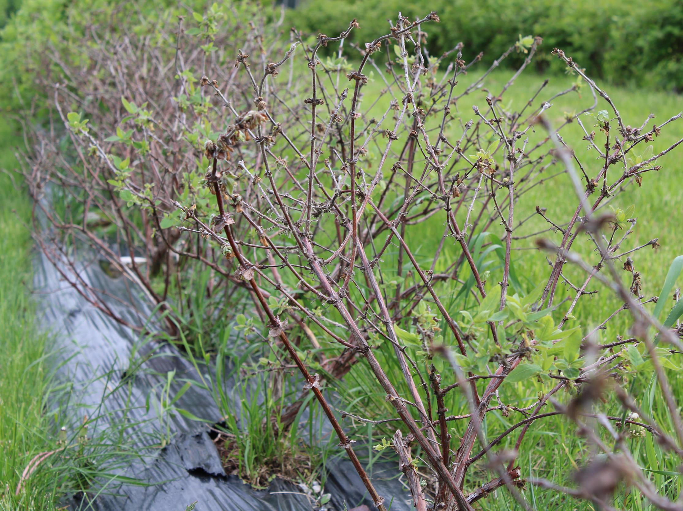 Légende: Plants de camérisiers qui ont subi un gel hivernal.