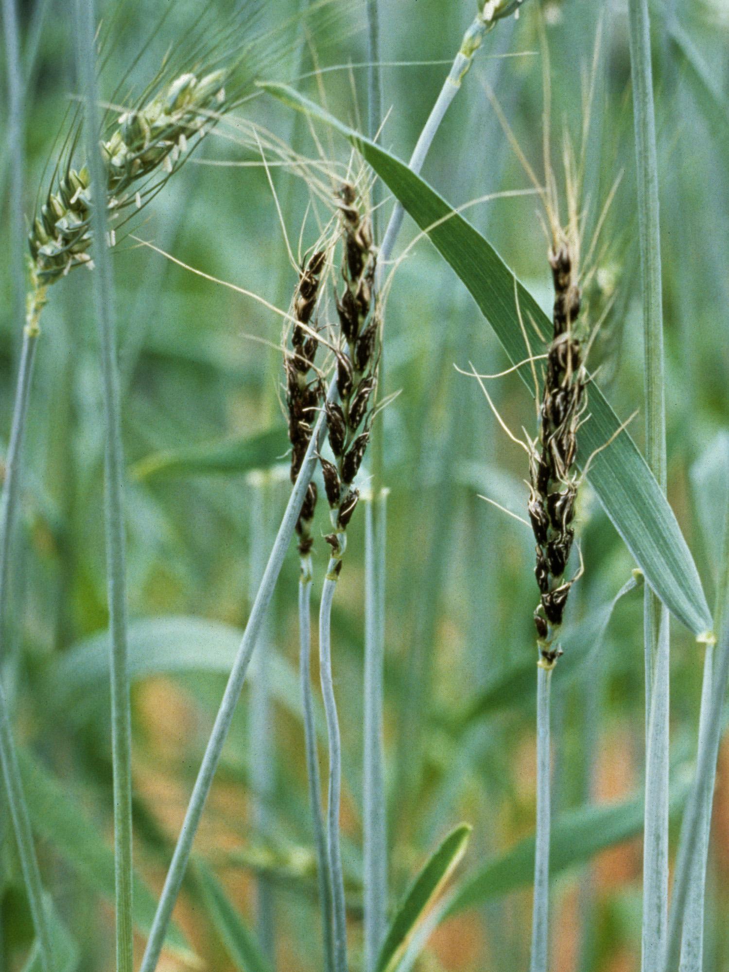 Légende: Spores brunes d'Ustilago sur épis de blé de printemps