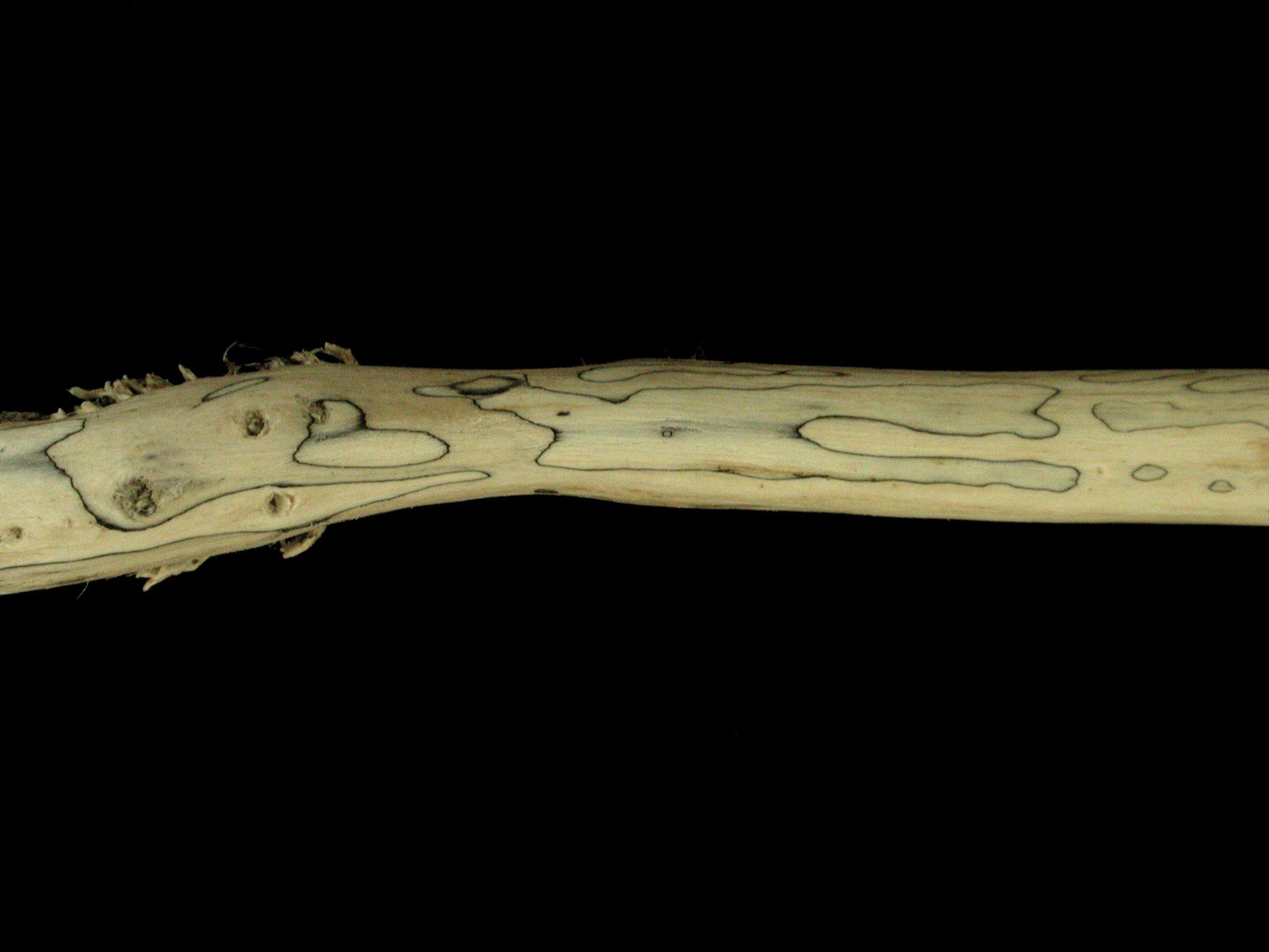 Description: Sur le pivot racinaire et à la base d’une tige de soya, présence de fines lignes noires superficielles. L'épiderme était complètement dégradé, il ne restait que l'intérieur du collet et de la tige. Tous les tissus du plant étaient desséchés. Les tests de laboratoire ont révélé la présence du champignon Phomopsis phaseoli, responsable de la brûlure phomopsienne chez le soya.