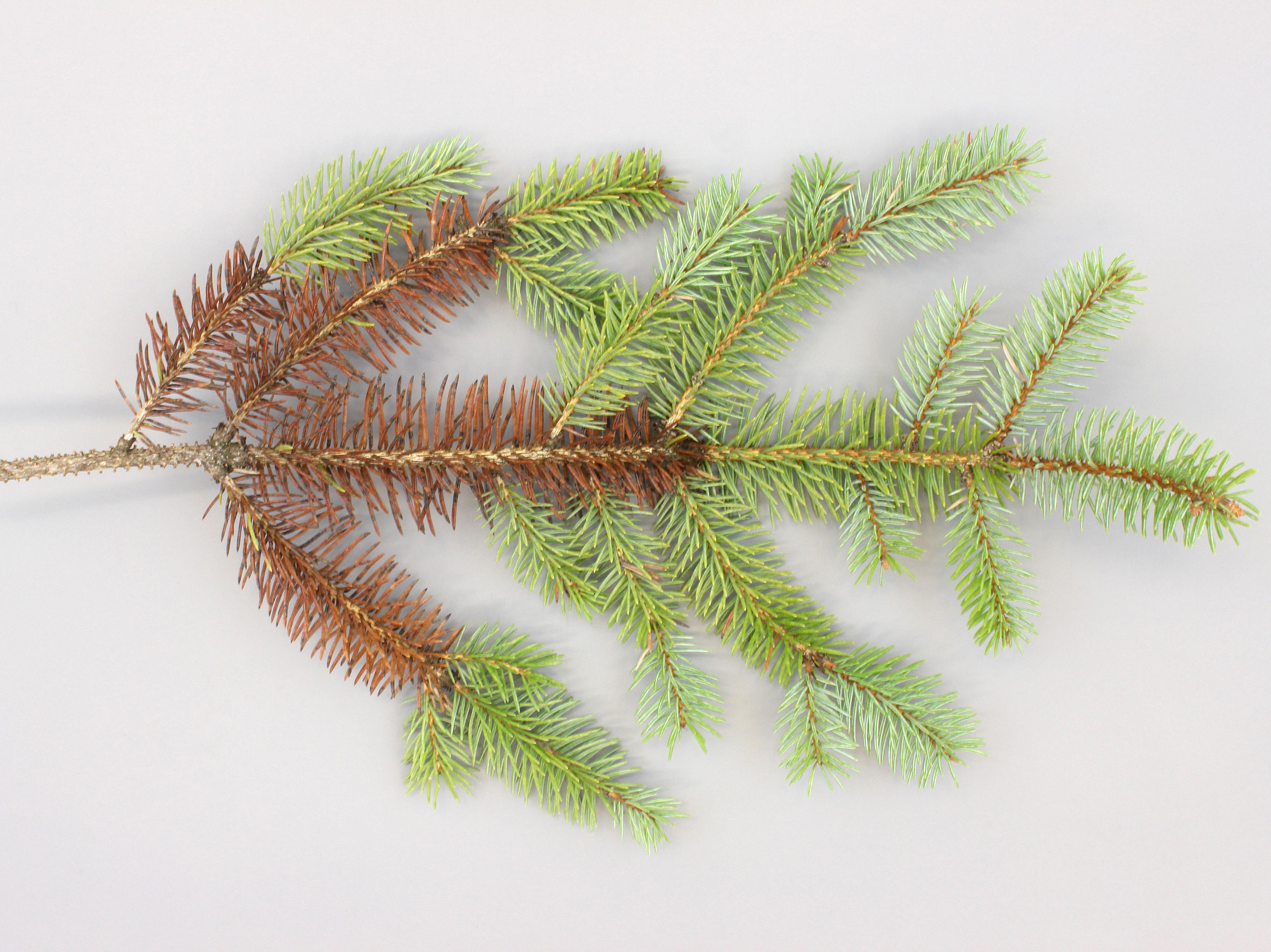 Légende: Brunissement des aiguille sur épinette bleue du Colorado