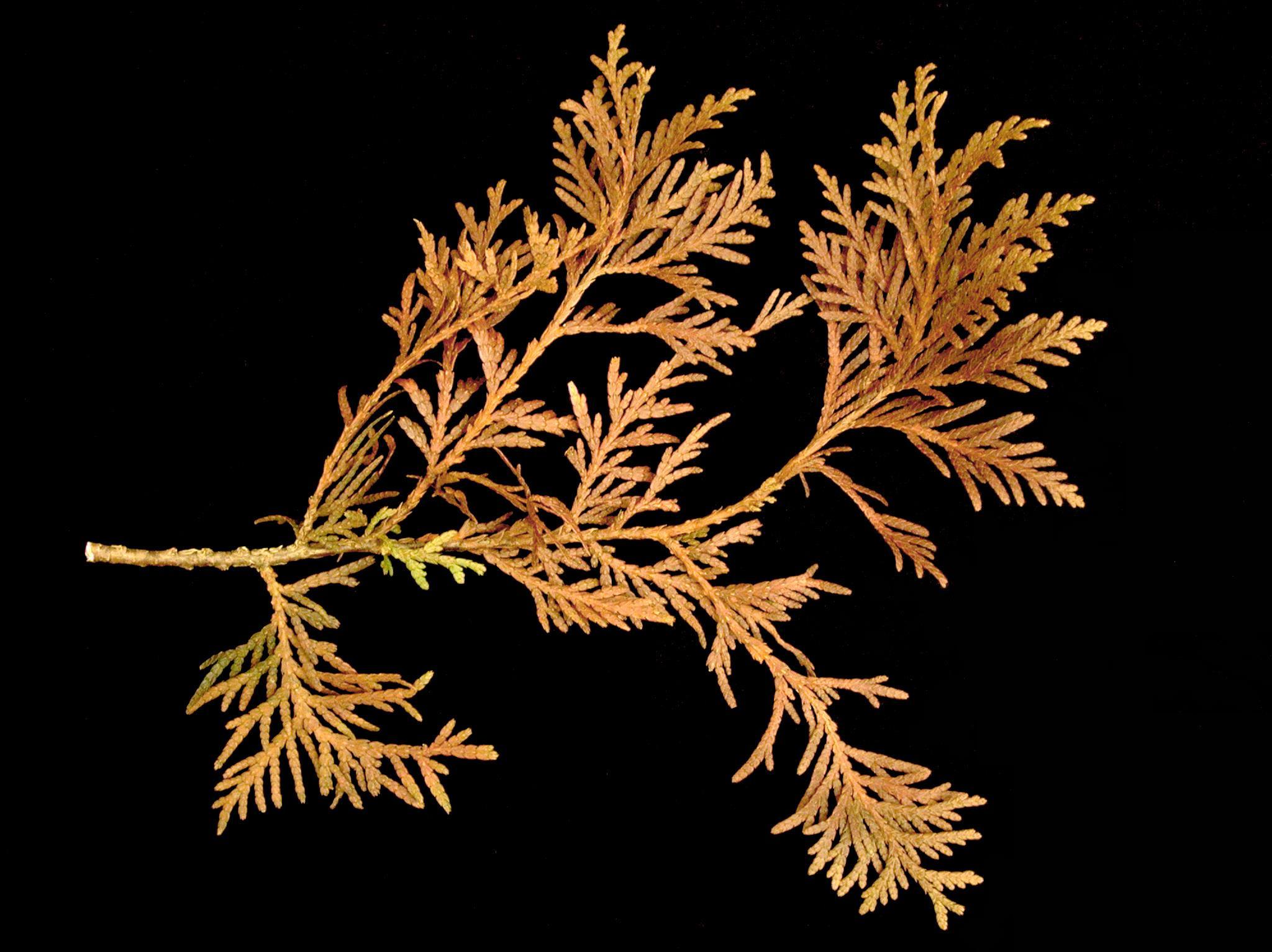 Légende: Brunissement des feuilles sur cèdre