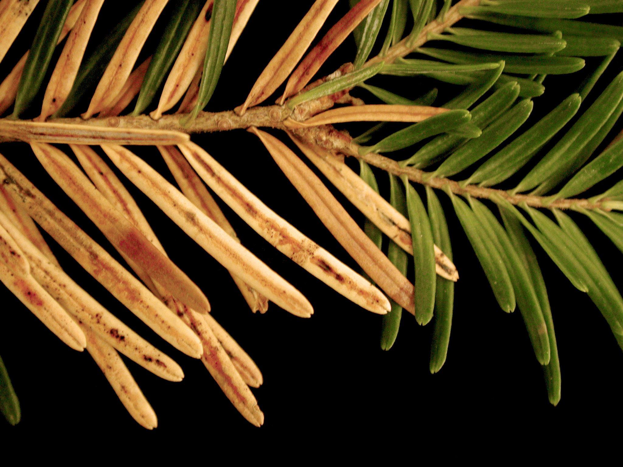 Légende: Anomalies de coloration sur aiguilles de sapin