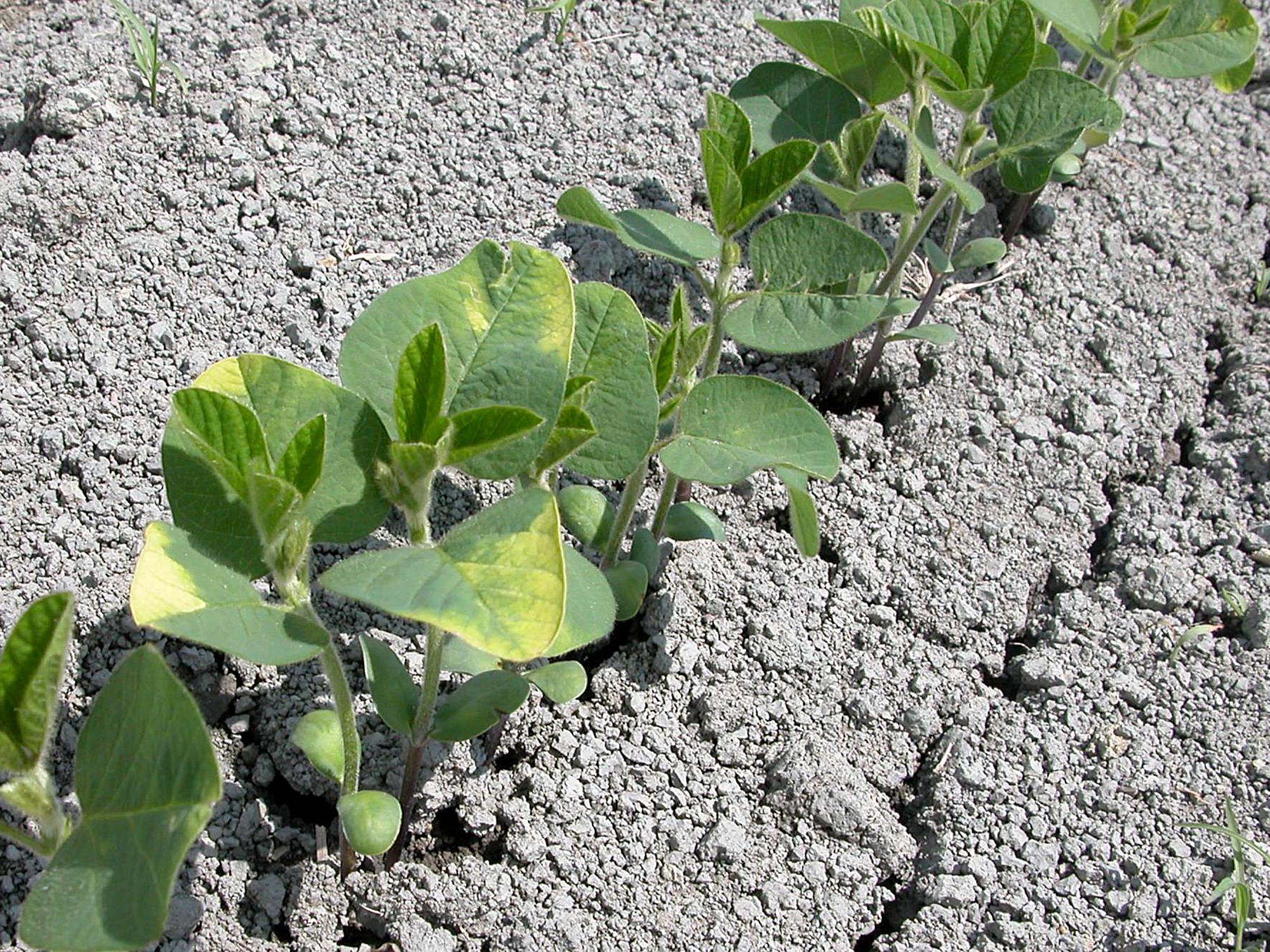 Légende: Jaunissement des feuilles de plants de soya