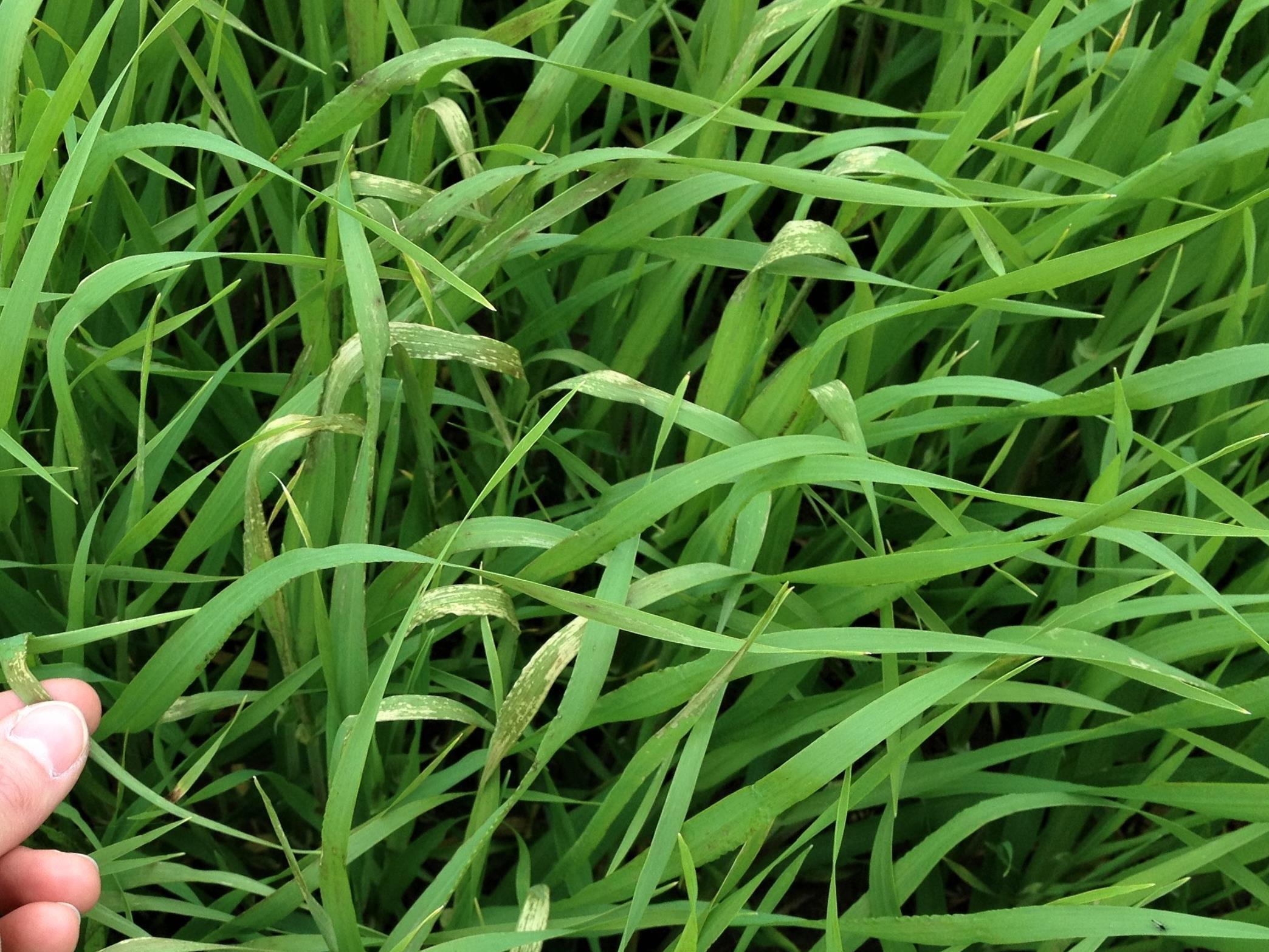 Légende: Plants d’orge avec brûlures foliaire