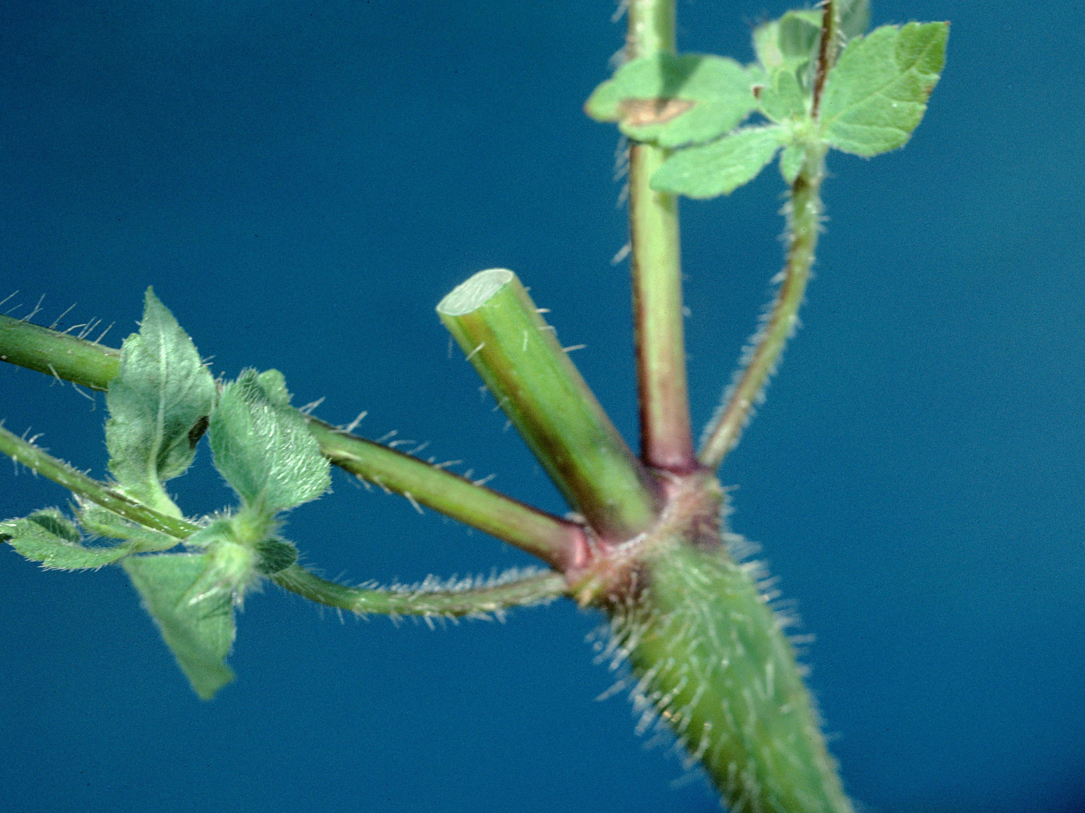 : Tige quadrangulaire, nœuds renflés, poils raides