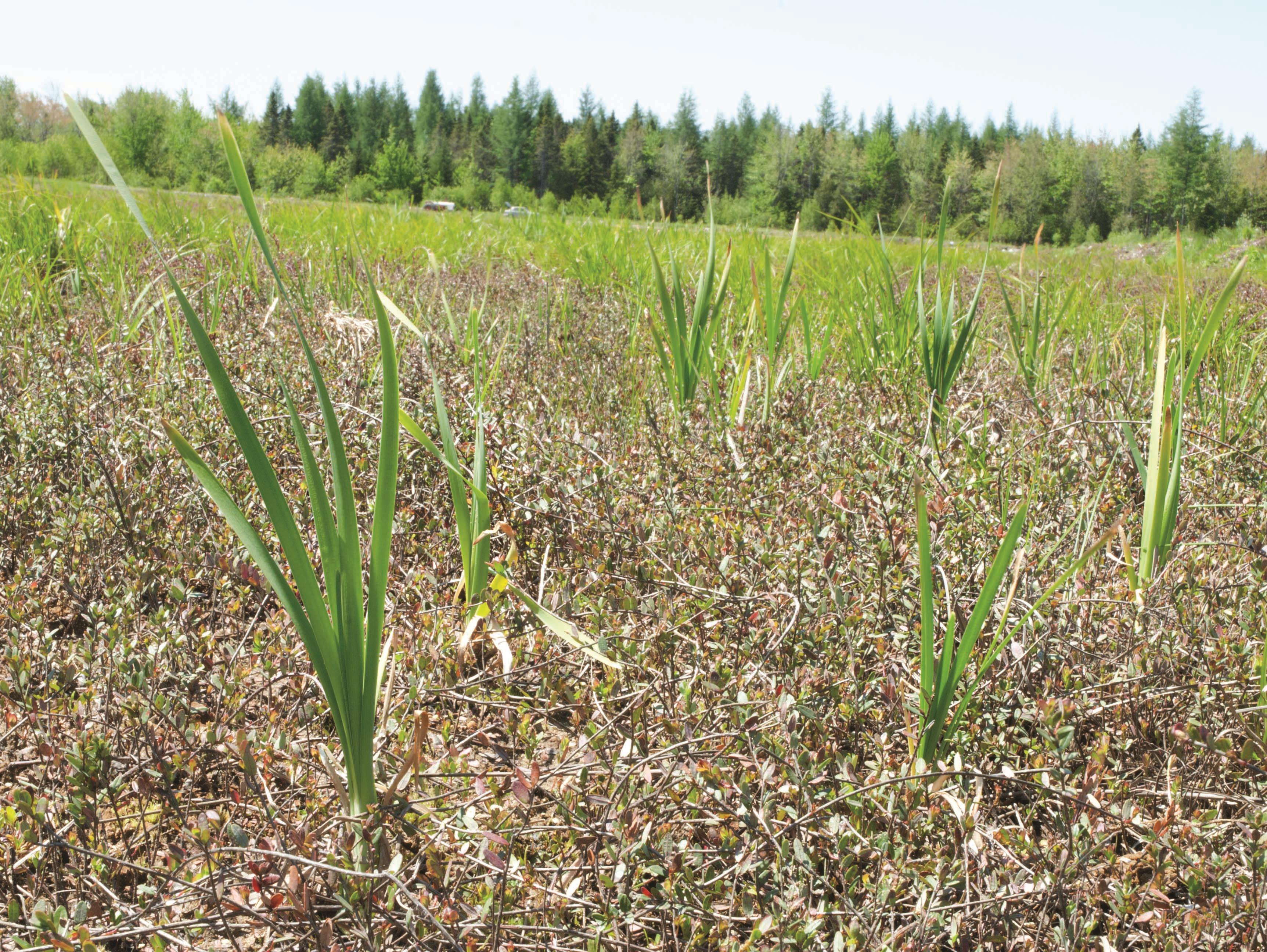 Légende: Plants, stade végétatif, dans un champ de canneberges