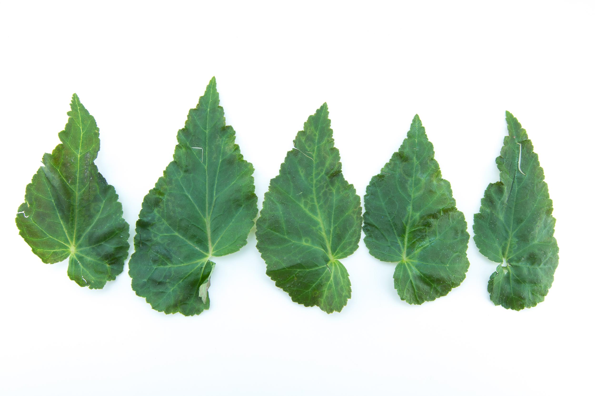 Description: Des feuilles d’un bégonia cultivé en serre montrent de fins anneaux vert clair à jaunes localisés sur ou le long des nervures à la face supérieure. Le test de laboratoire (test ELISA) s’est révélé négatif pour la détection des virus (19 virus testés).   Malgré le résultat négatif du test effectué, il est plausible de croire que ce symptôme est lié à une infection virale. Il pourrait s'agir d'une infection reliée au virus du bruissement du tabac (TRV - Tobacco rattle virus) qui réagit souvent très faiblement à l'anticorps commercial utilisé pour sa détection. Une autre possibilité serait une infection par un virus assez récent, le Bacopa chlorosis virus (BaCV) dont il n'existe pas encore d'anticorps disponibles.