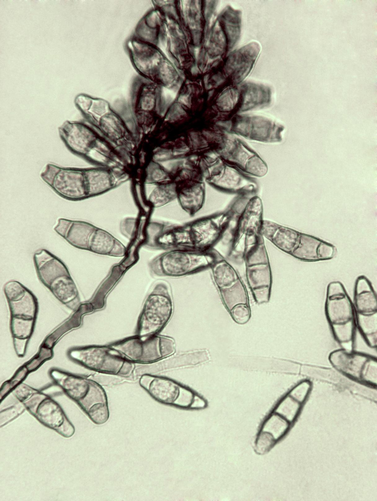 : Conidies et conidiophore de Curvularia sp.