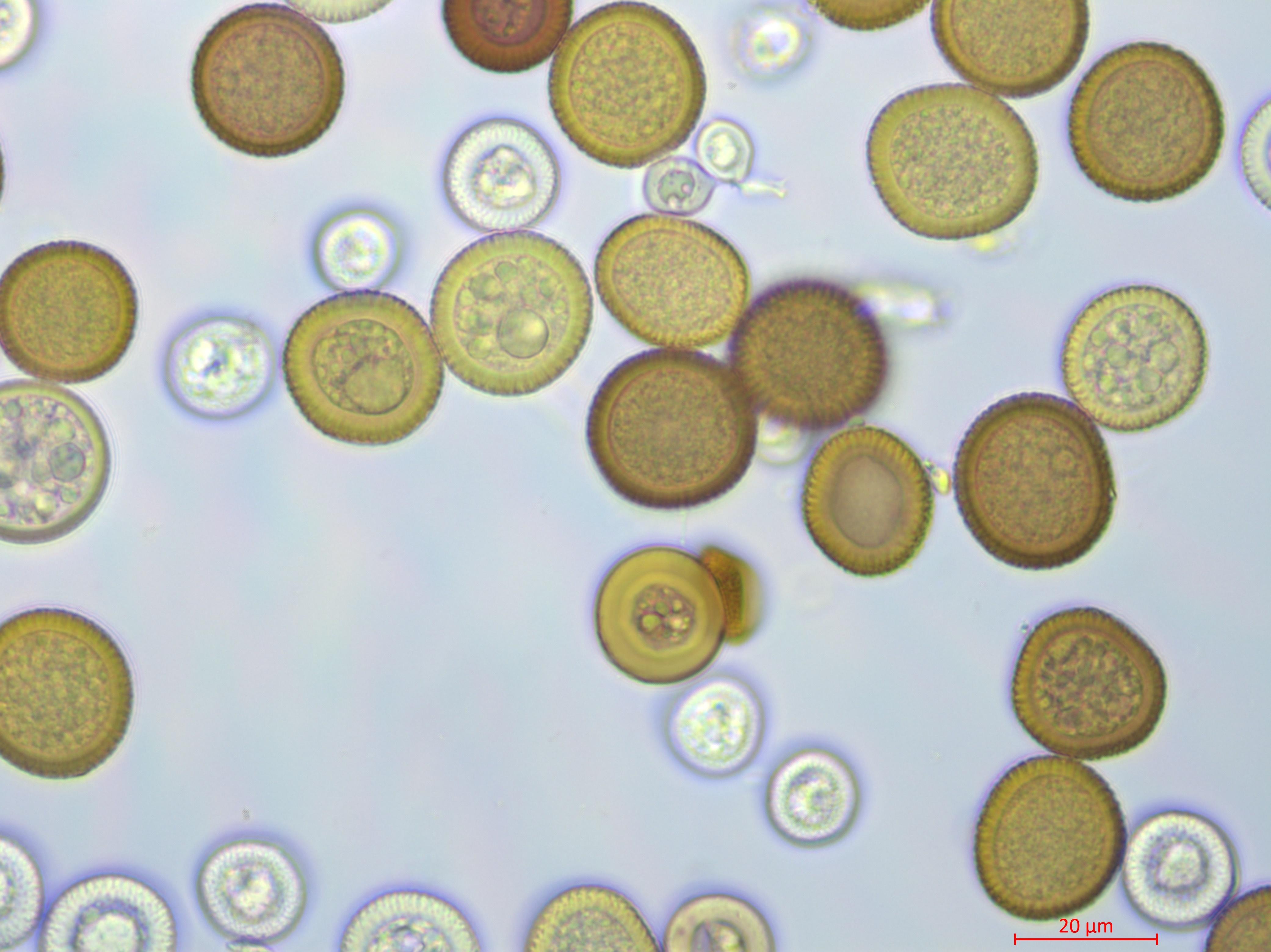 : Téliospores de Tilletia maclaganii retrouvées dans les inflorescences d’un panic érigé