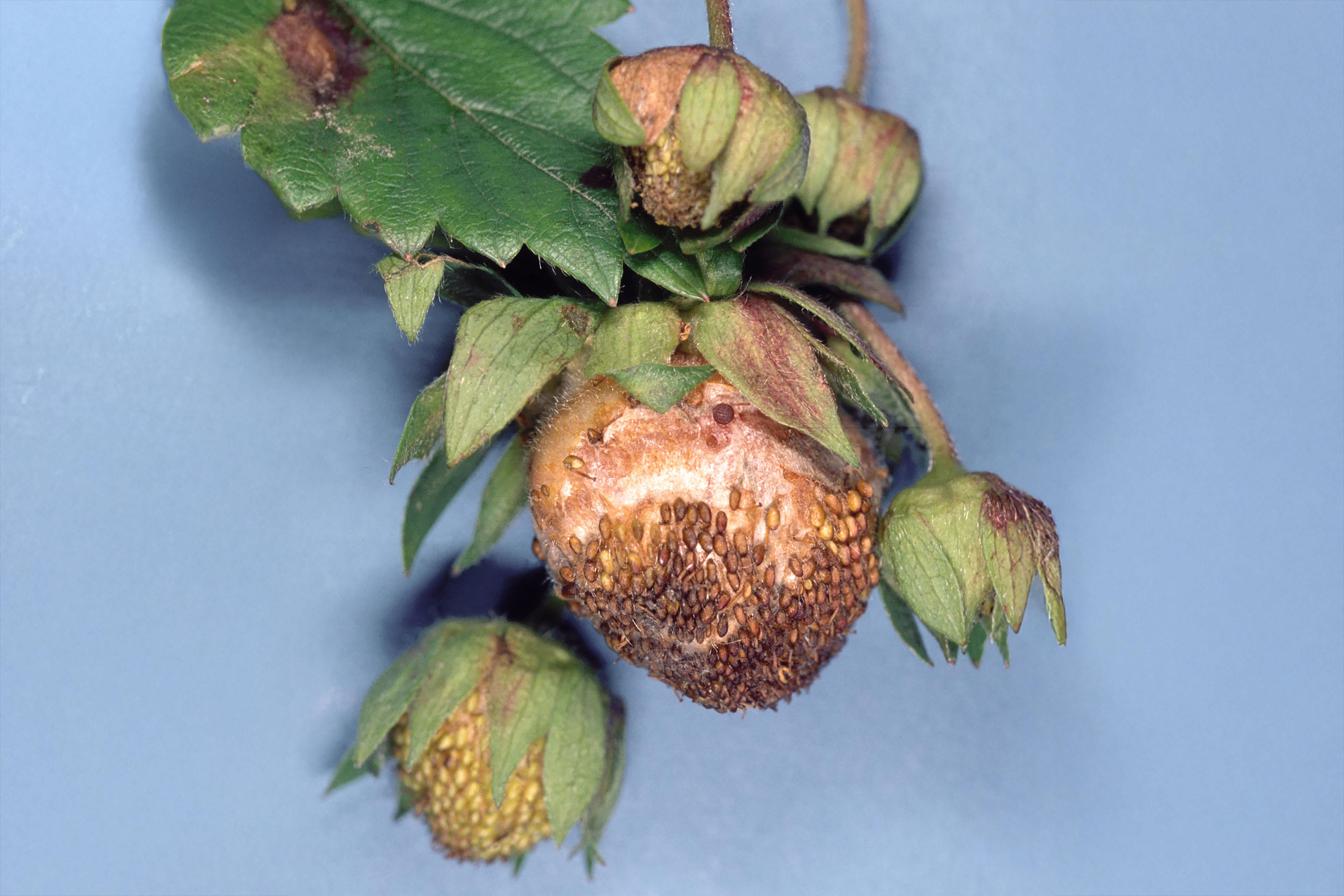 Description: Les fraises sont déformées et les akènes sont regroupés dans la partie distale du fruit. Les symptômes s’apparentent à ceux d'une carence de bore. La carence en bore réduit la taille de la fleur et la production de pollen, causant des fruits difformes, petits et d’une mauvaise qualité.