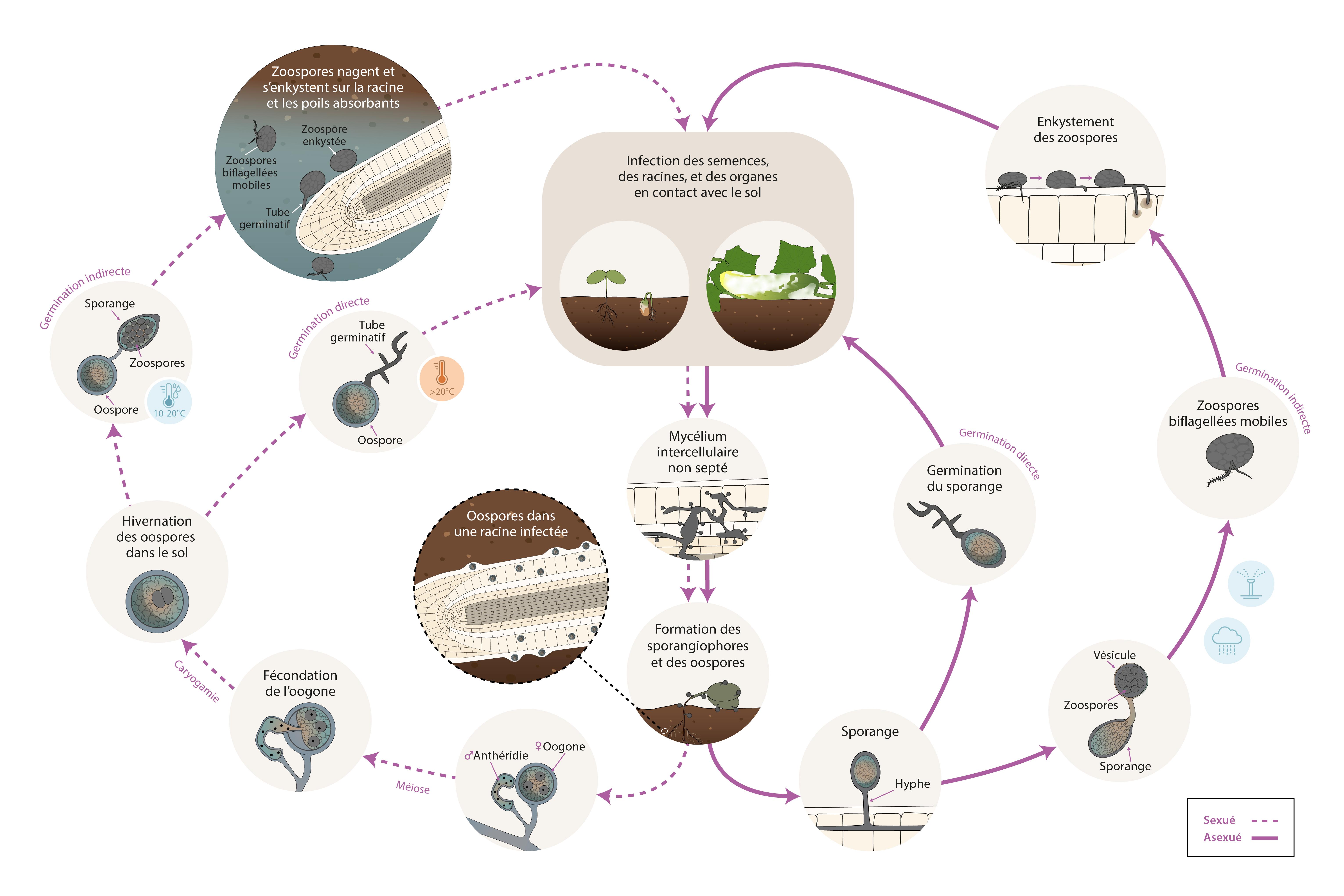 : Cycle épidémiologique de Pythium sp.
