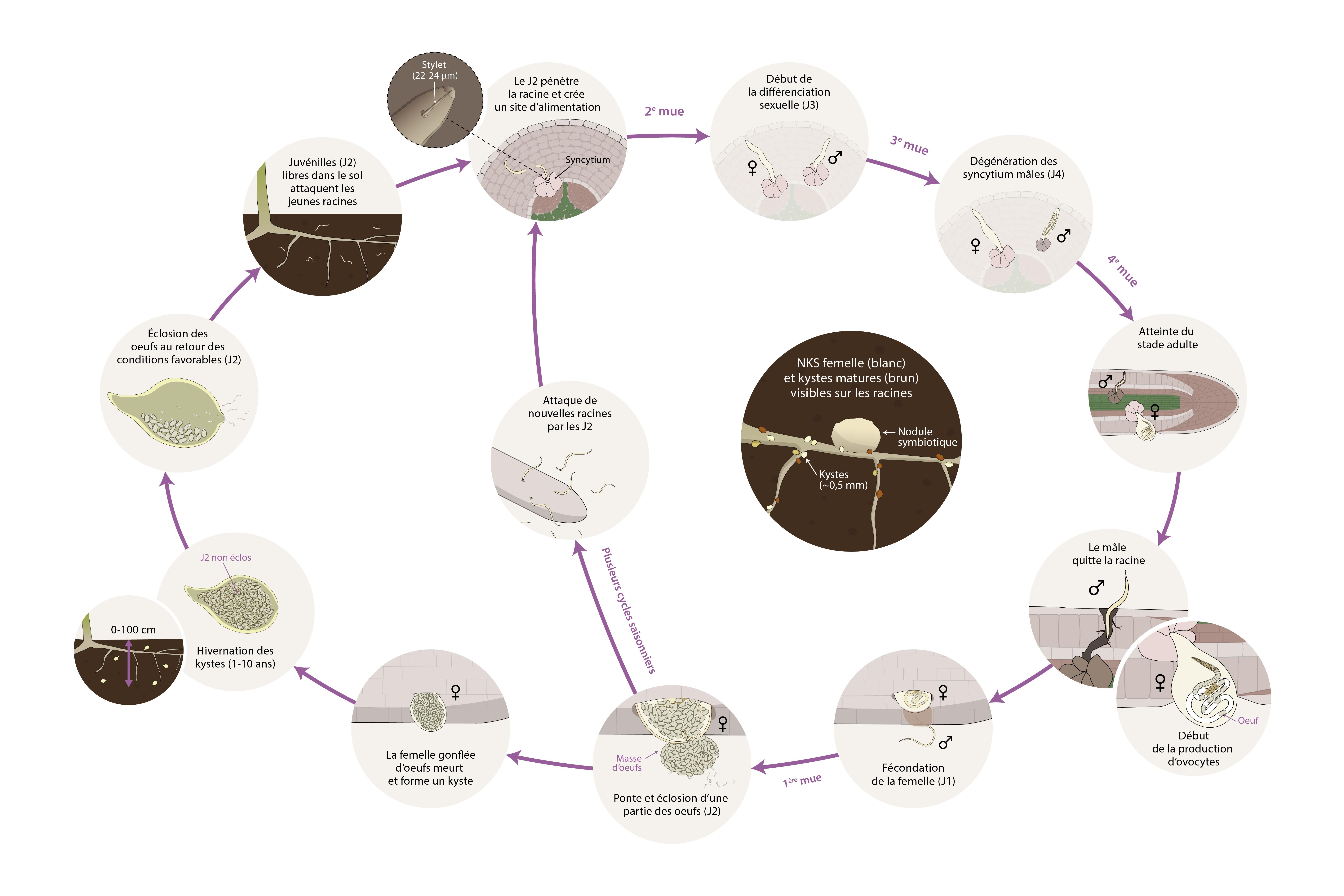 : Cycle épidémiologique de Heterodera glycines, le nématode à kyste du soya (NKS)