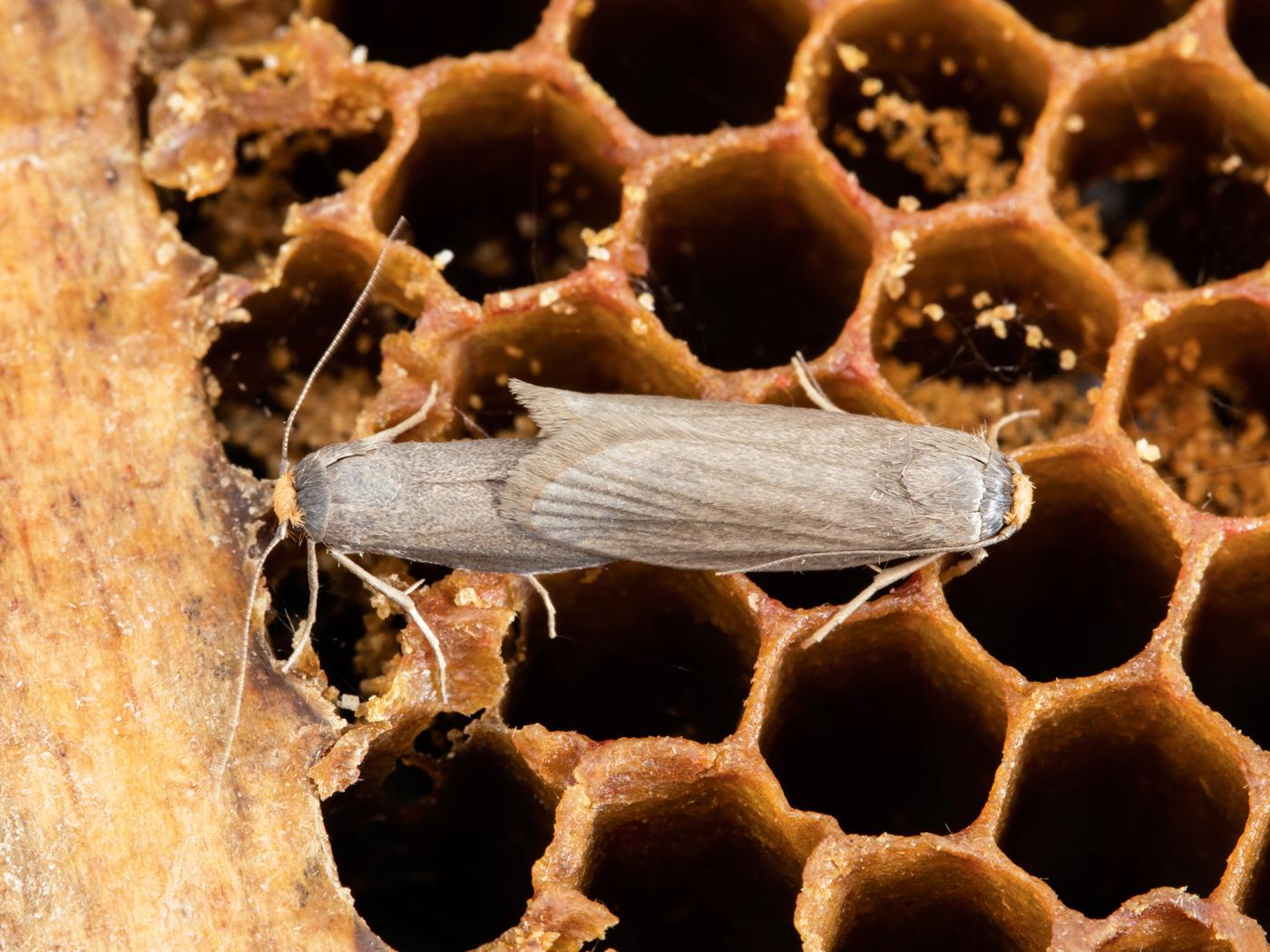 Cependant, il est à noter que A. grisella est un ravageur secondaire dans les colonies d’abeilles. Les dommages les plus fréquents ont lieu pendant l’entreposage du matériel, rendant celui-ci inutilisable pour la commercialisation.
