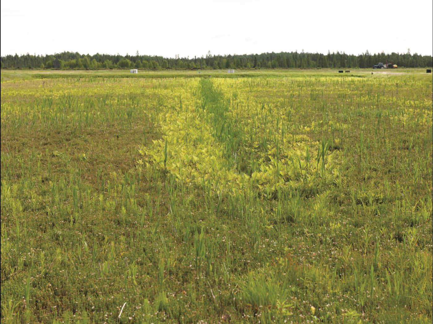 Légende: Jeunes plants dans un champ de canneberges