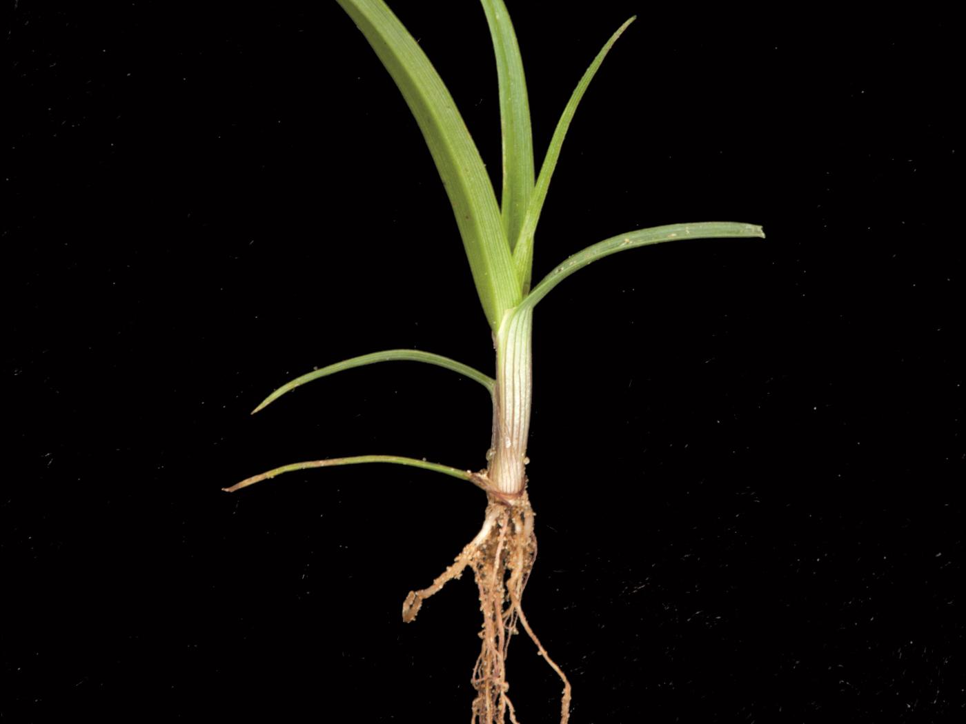 Légende: Base d'un plant, rhizomes courts et racines fibreuses