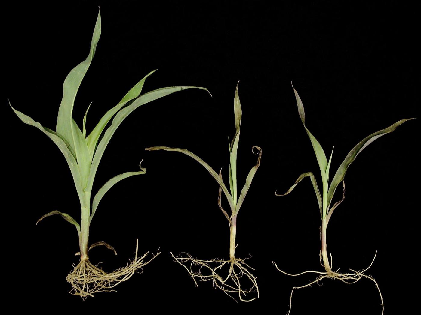 Racine : inhibition de l'élongation des racines engendrant le développement d'un système racinaire court, rabougri, cassant et ayant l'aspect d'un buisson. Les racines sont parfois jaunes à brunes.