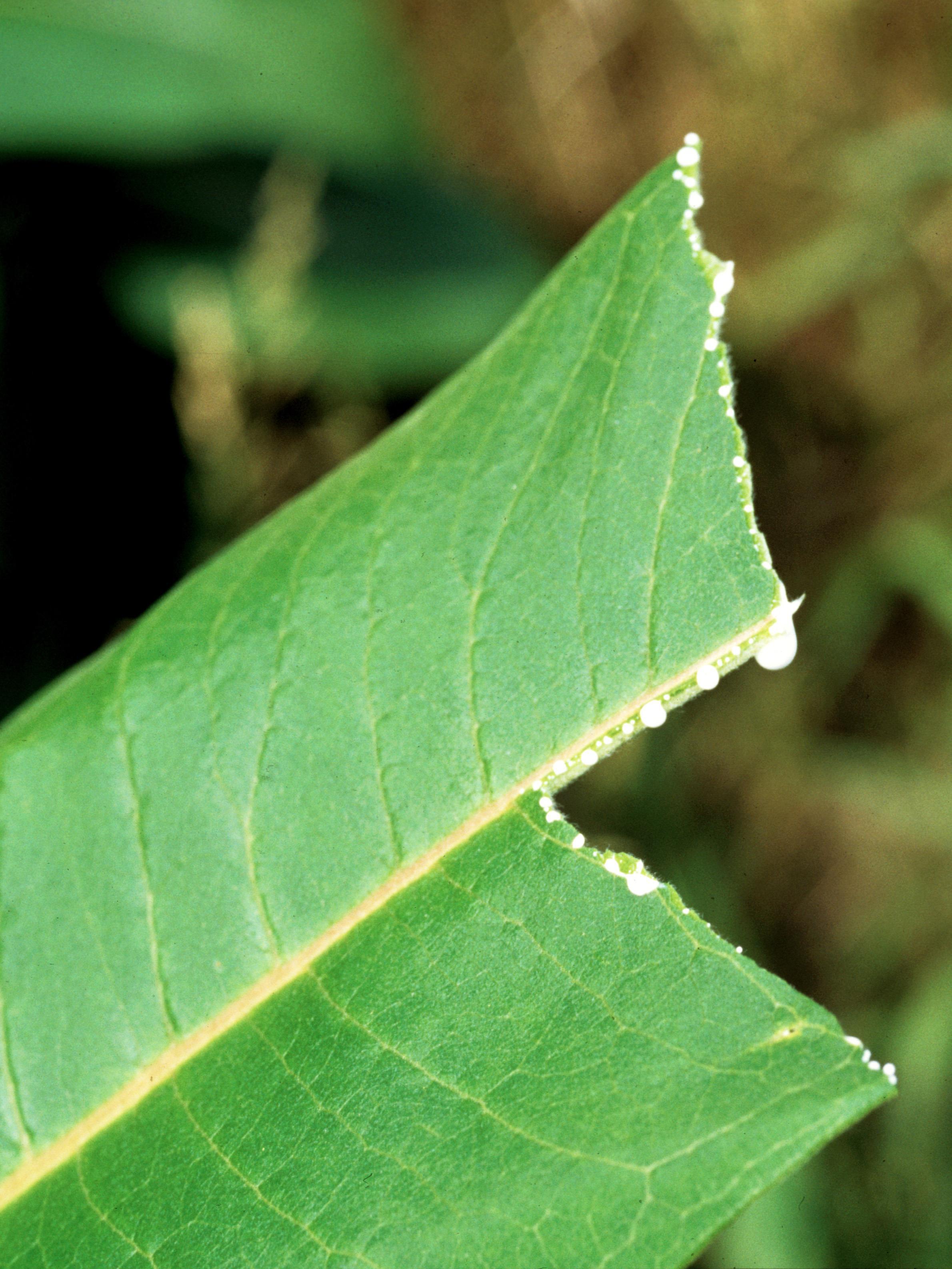 : Feuille brisée, présence de latex