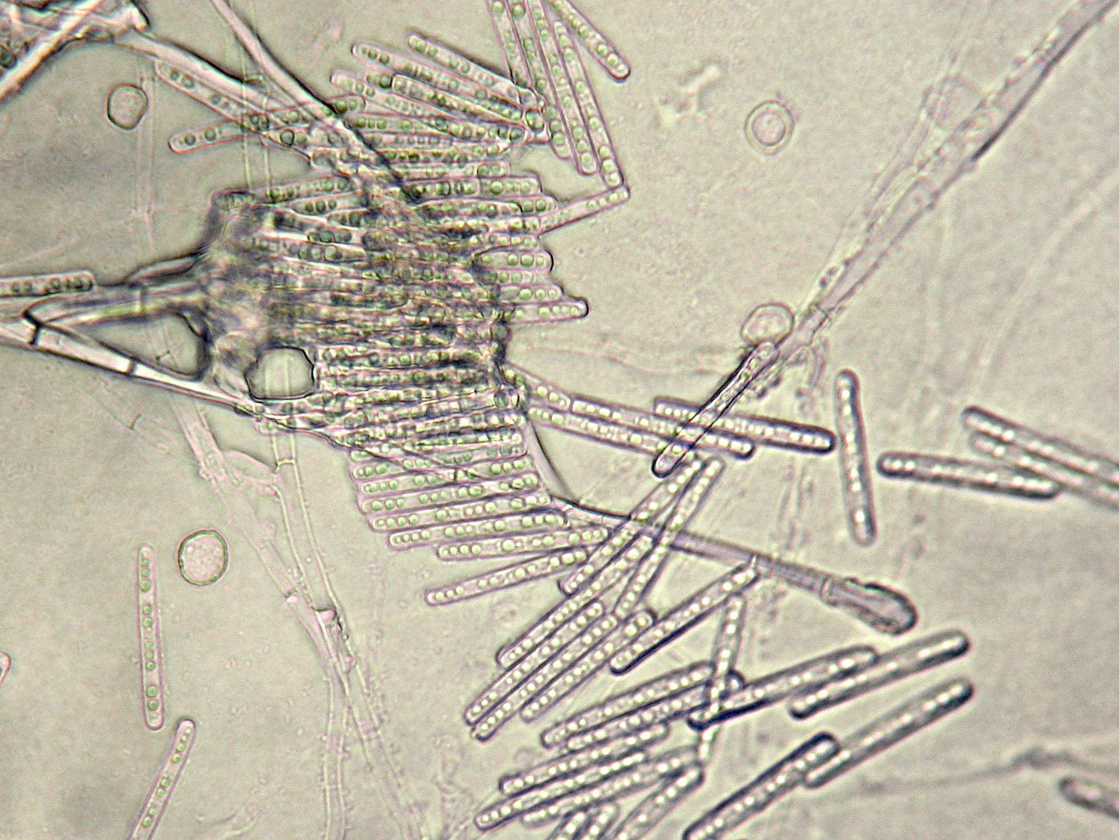 : Des conidies et une ampoule stérile de Cylindrocladium sp.