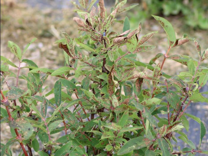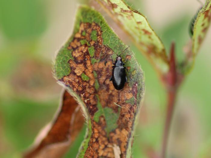 Dommages d'altises sur un plant de camerise