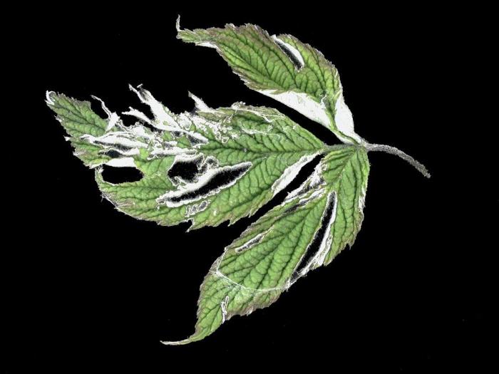 Feuille endommagée par la chrysomèle du fraisier