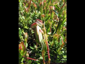 Tige de canneberges présentant des dommages causés par des larves de la tordeuse de la vigne. On observe que les feuilles terminales de cette nouvelle tige sont enroulées par ...