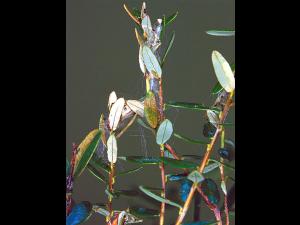 À la face supérieure d’une feuille de canneberge (cv 'Stevens'), présence de taches rouges à noires, plutôt circulaires. Les observations microscopiques ont révélé la présence...