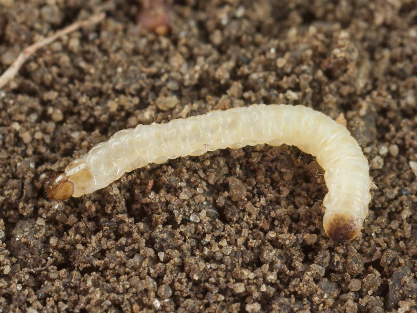 Larve : 10,0 à 15,0 mm à maturité; le corps est très allongé et de couleur blanc crème; près de la tête, trois paires de minuscules pattes sont présentes; la tête, la plaque thoracique ainsi que la plaque annale sont brunes.