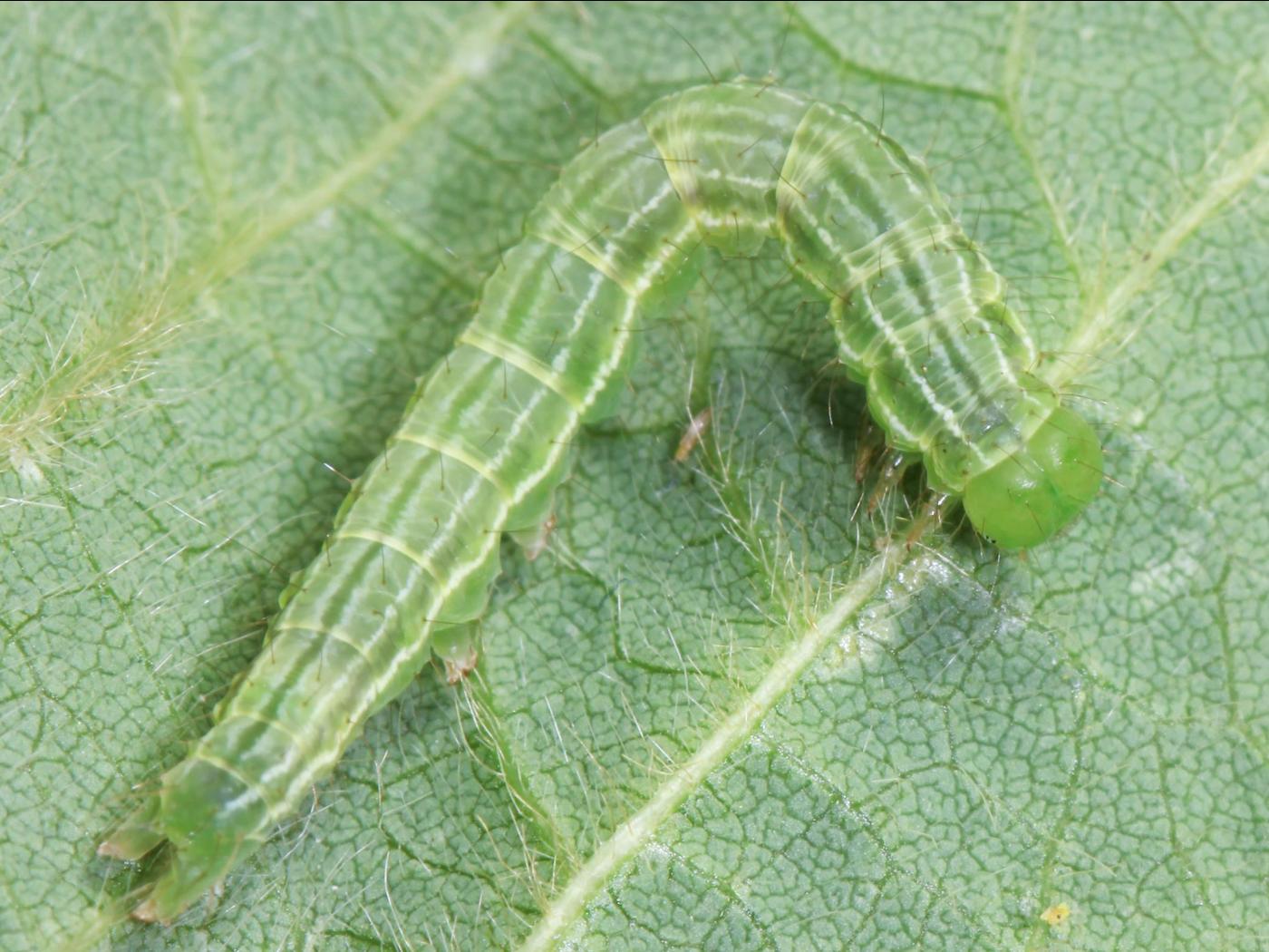 Larve : 30,0 mm à maturité; la tête est vert brillant sans aucune marque distincte; le corps est principalement vert pâle et traversé de lignes latérales et subdorsales blanches; une fine ligne blanc jaunâtre est présente entre chacun des segments du corps; de nombreuses soies brunes et dressées parsèment la tête ainsi que les segments thoraciques et abdominaux.