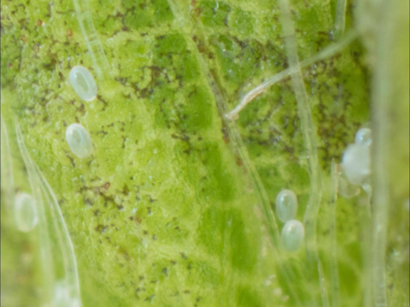 Oeuf : 0,12 mm; il est de forme elliptique; translucide et lisse.