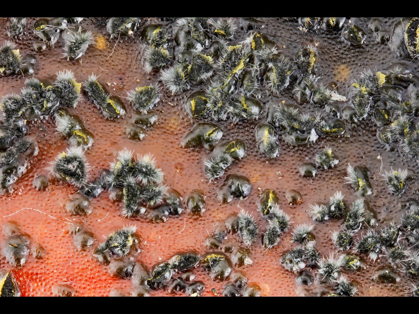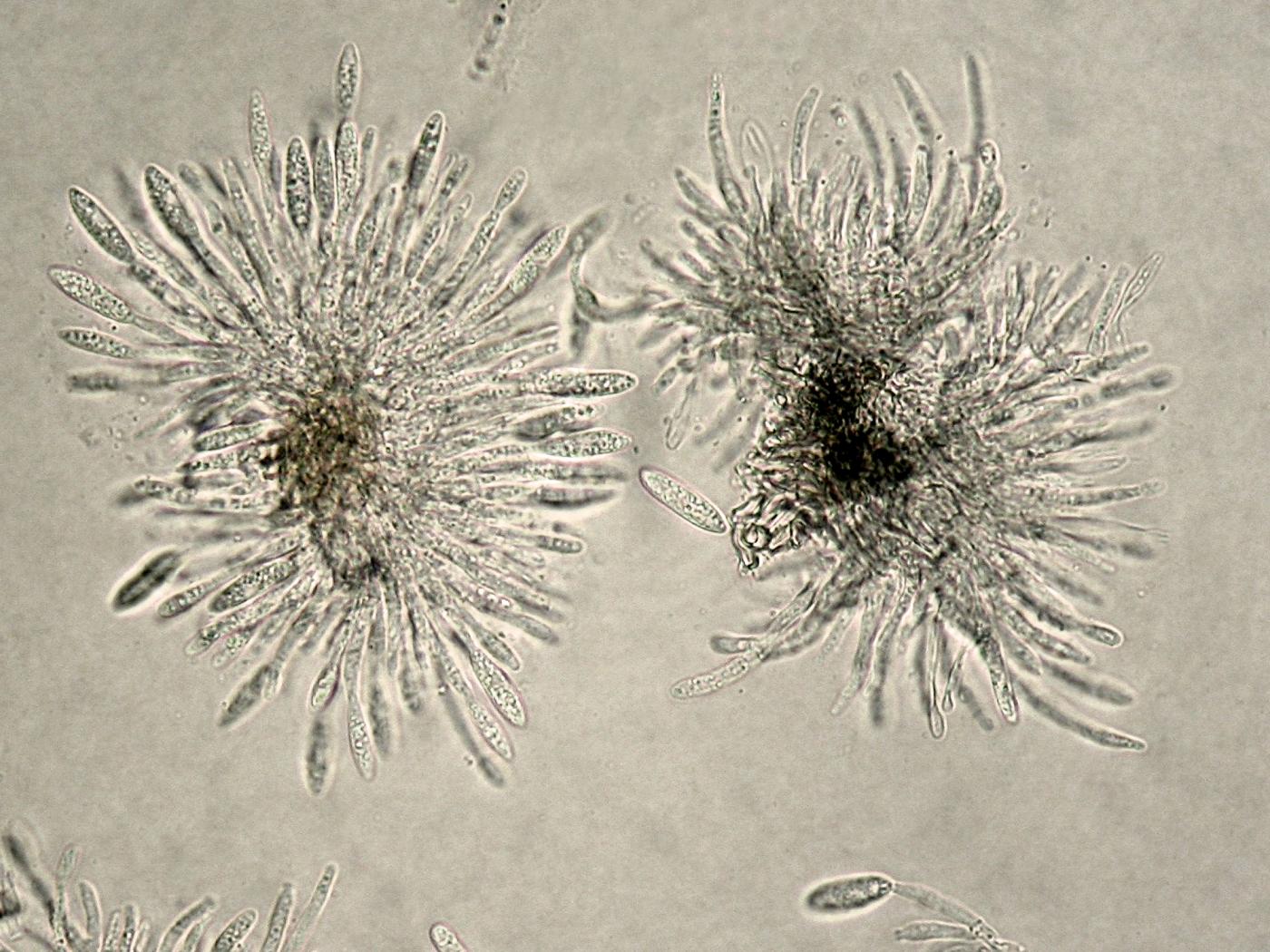 Mycélium : les hyphes sont hyalins, lisses, septés et ramifiés. Diamètre : 1-5,5 μm