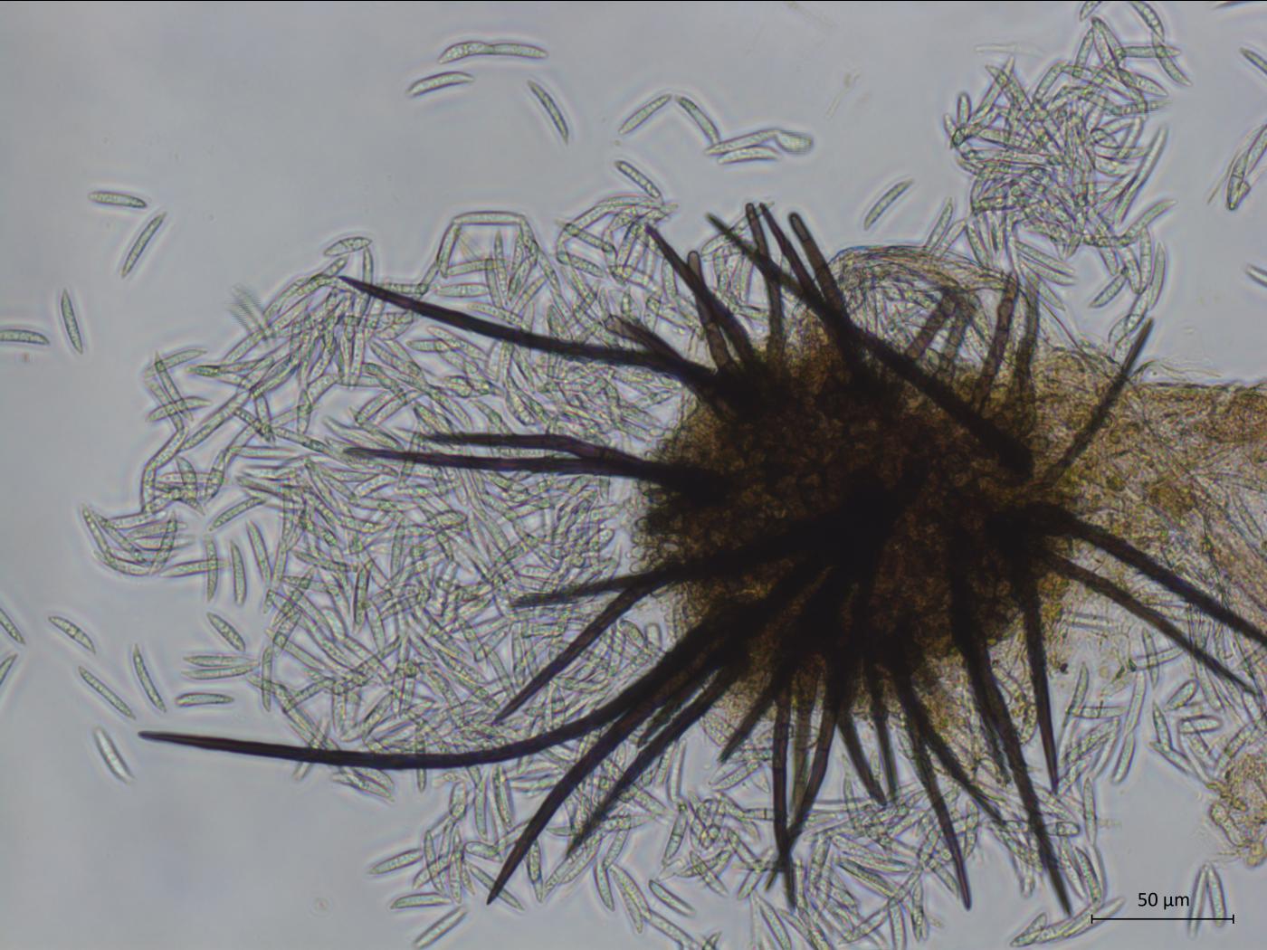 Fructification : aucun acervule. Sur la plante hôte, acervule avec de rares setae.