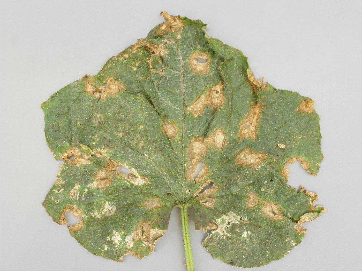 Légende: Taches sur feuille de concombre