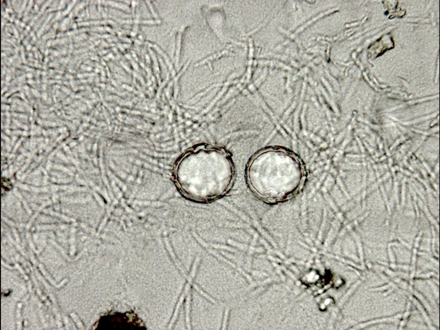 : Entyloma spp. est le seul représentant des Ustilaginales a produire deux types de spore. Les plus fréquemment observées sont les ustilospores qui sont dans les cellules végétales. Les autres spores, moins souvent observées, se retrouvent en surface de la feuille et sont filiformes.