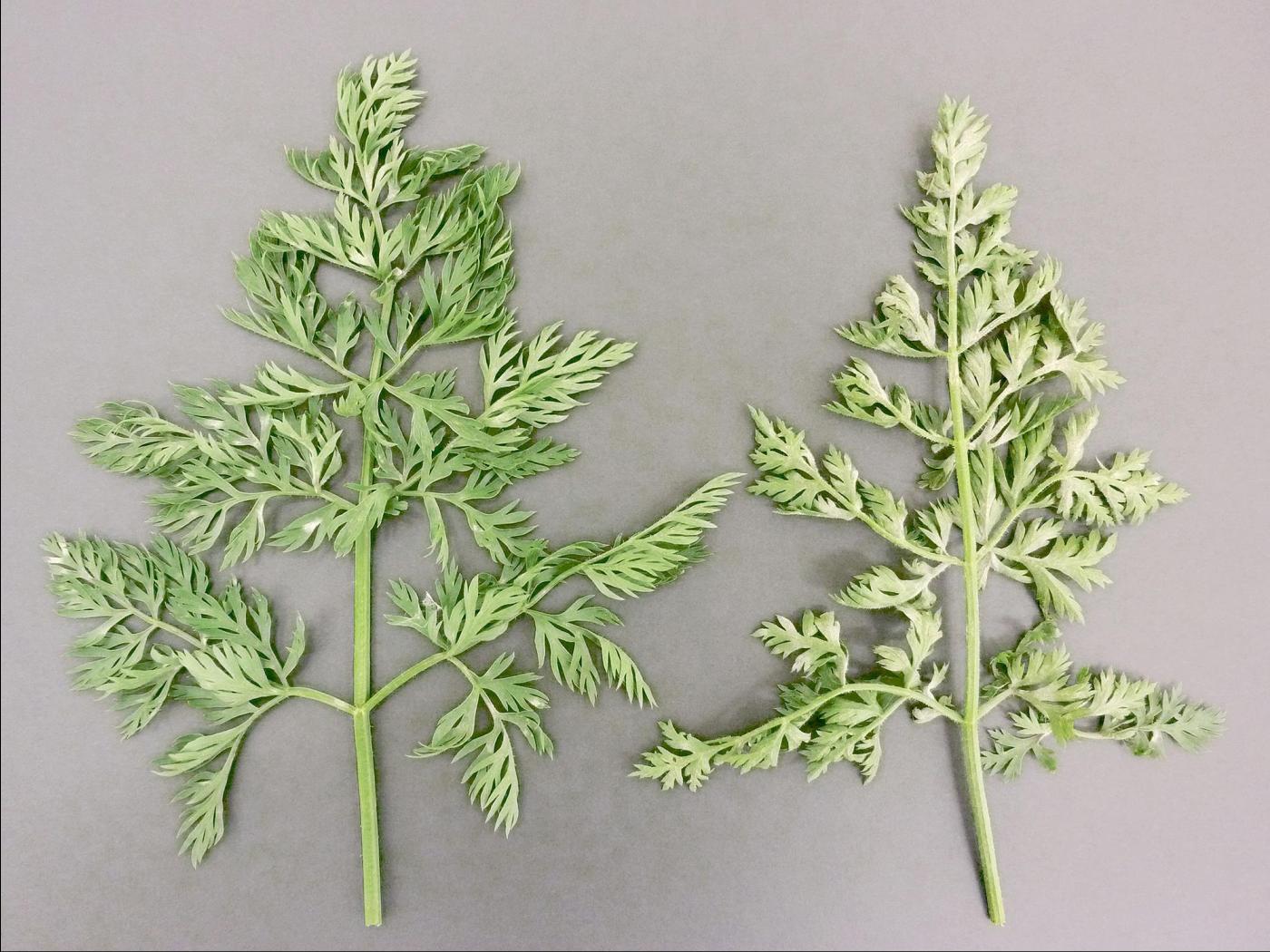 Légende: Mycélium blanc sur feuilles de carotte