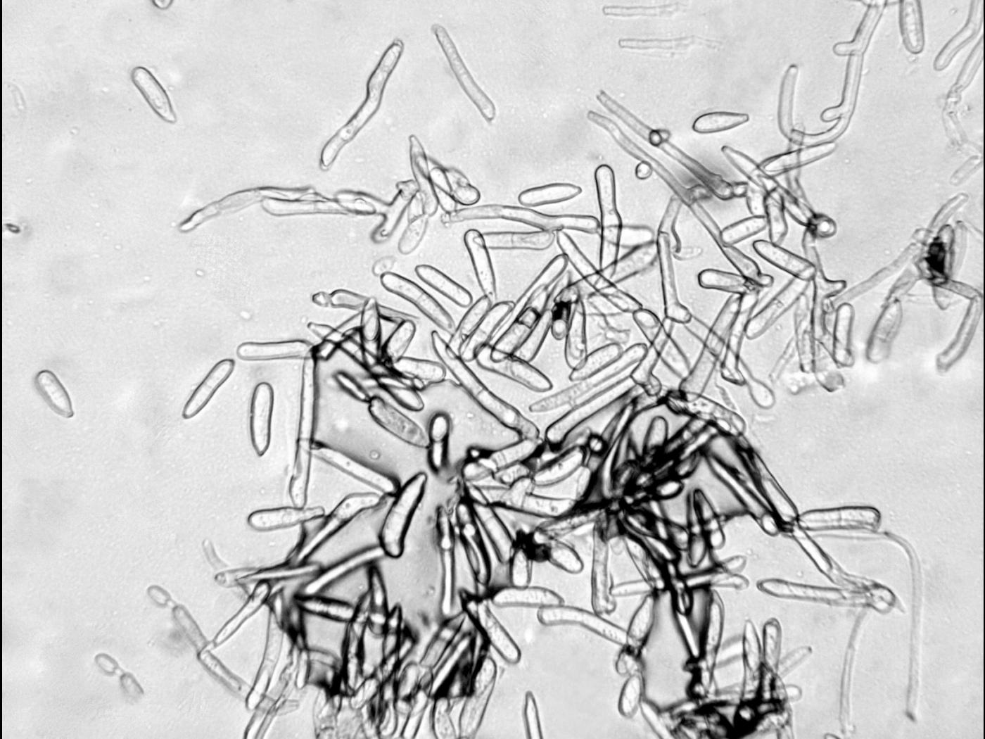 - Conidies : De forme cylindrique à ellipsoïde, lisses, droites ou légèrement courbées, sont placées en chaînes et souvent ramifiées, de 0 à 3 septations. Avec un hile épais et évident. Dimension : 16-40 x 5-7 μm.