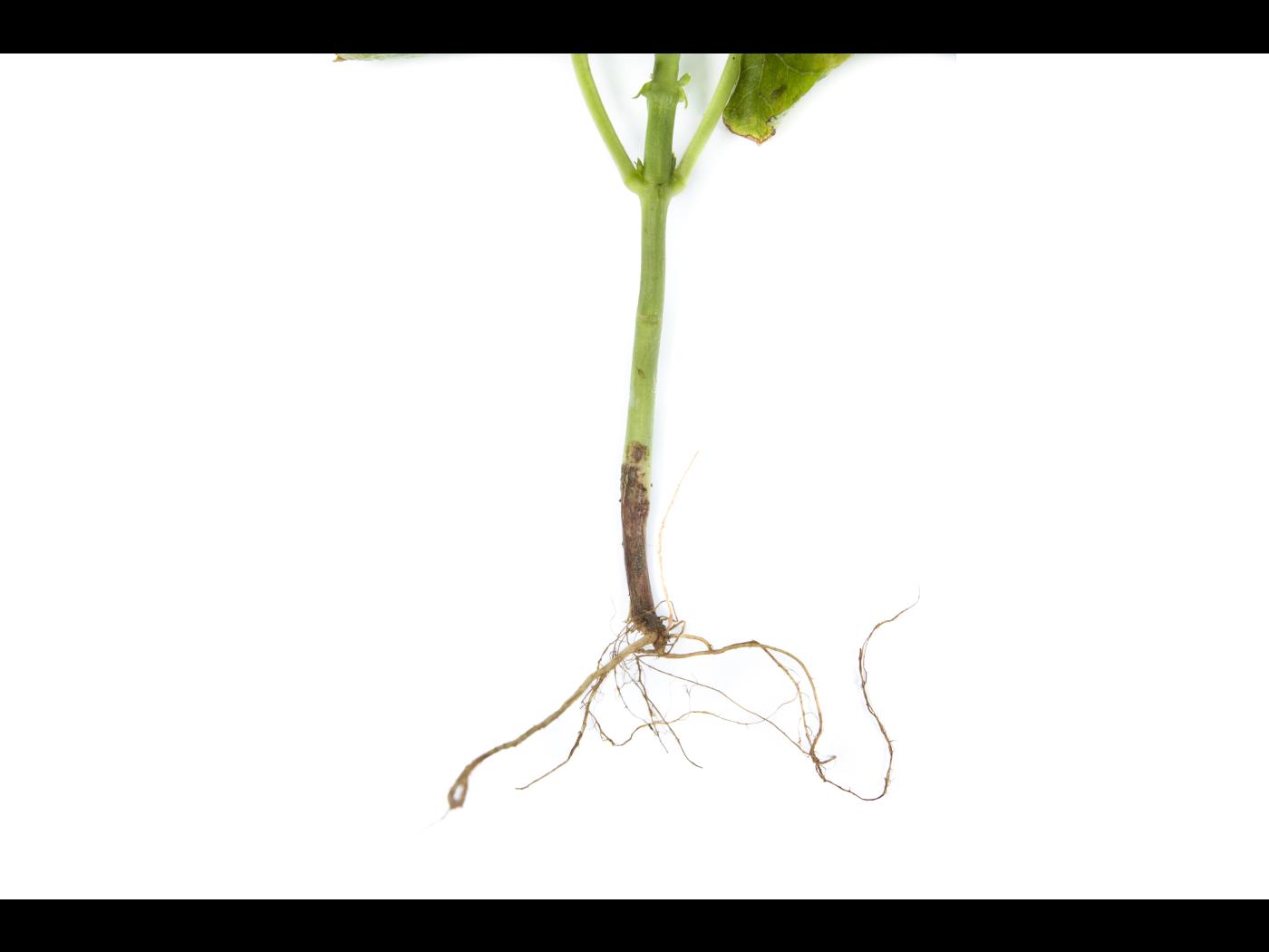 Racine : le système vasculaire est brun. Les racines secondaires deviennent brunes et meurent. Le système vasculaire est brun rougeâtre à brun.