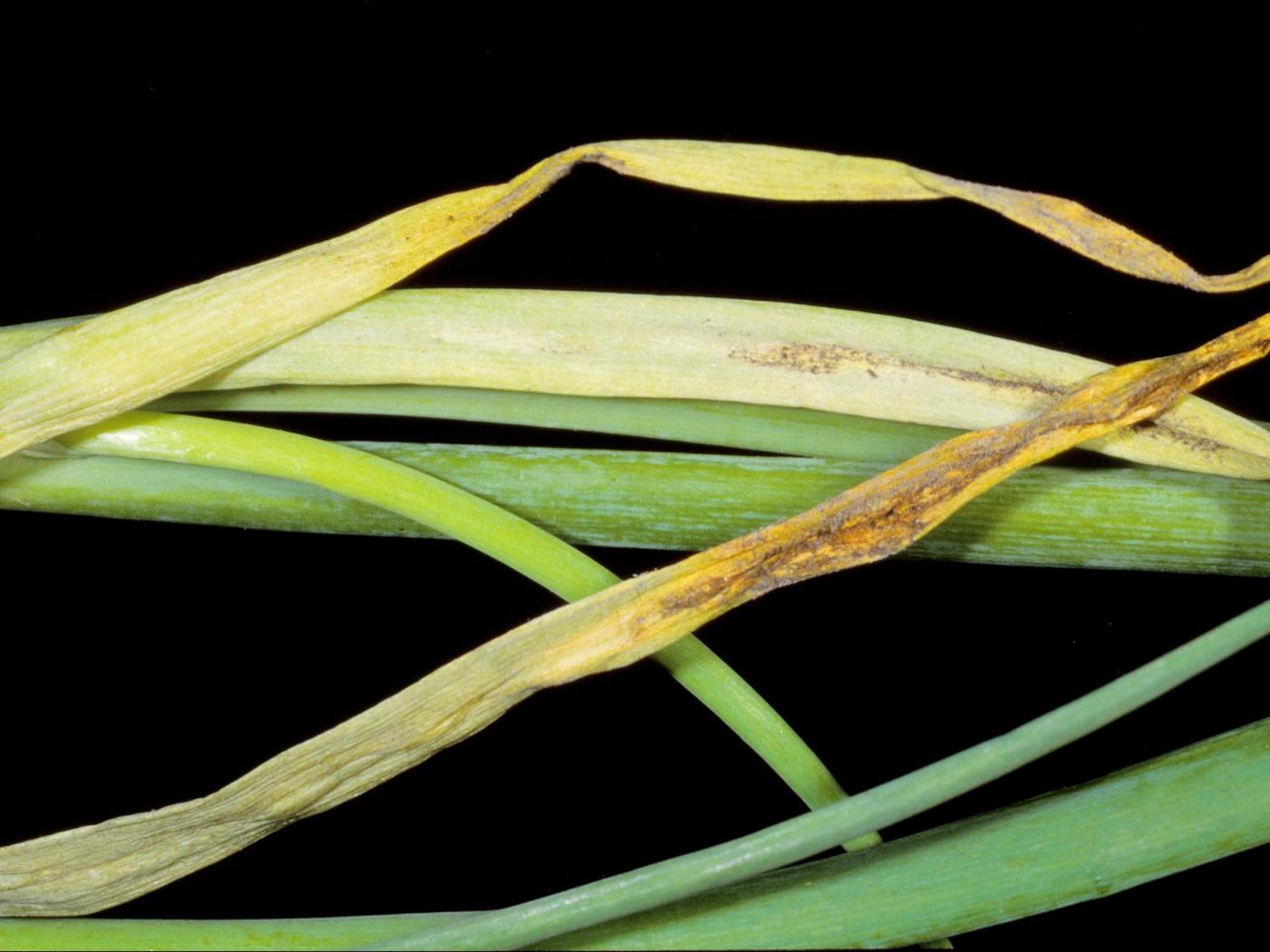 Le mildiou peut être confondu avec la tache pourpre (Alternaria porri) lorsque les symptômes sont jeunes.