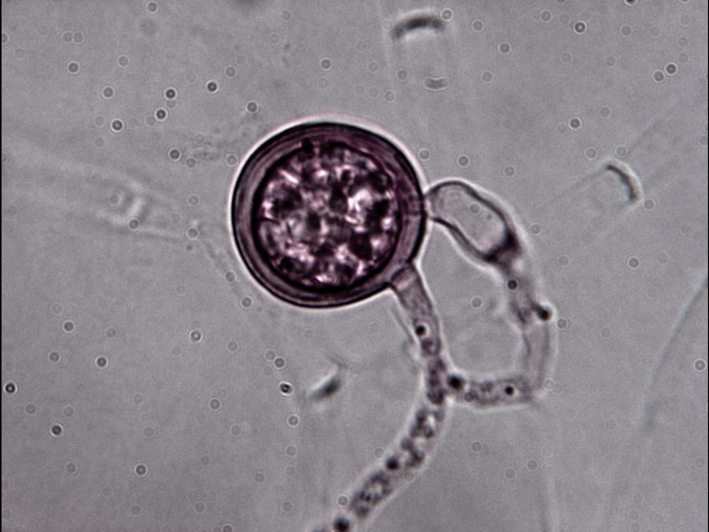 Chlamydospores : également terminales ou intercalaires, elles ressemblent à des oogones, mais avec une paroi plus épaisse. Septées, contrairement aux gonflements d’hyphes, les chlamydospores seraient séparées par une septation.
