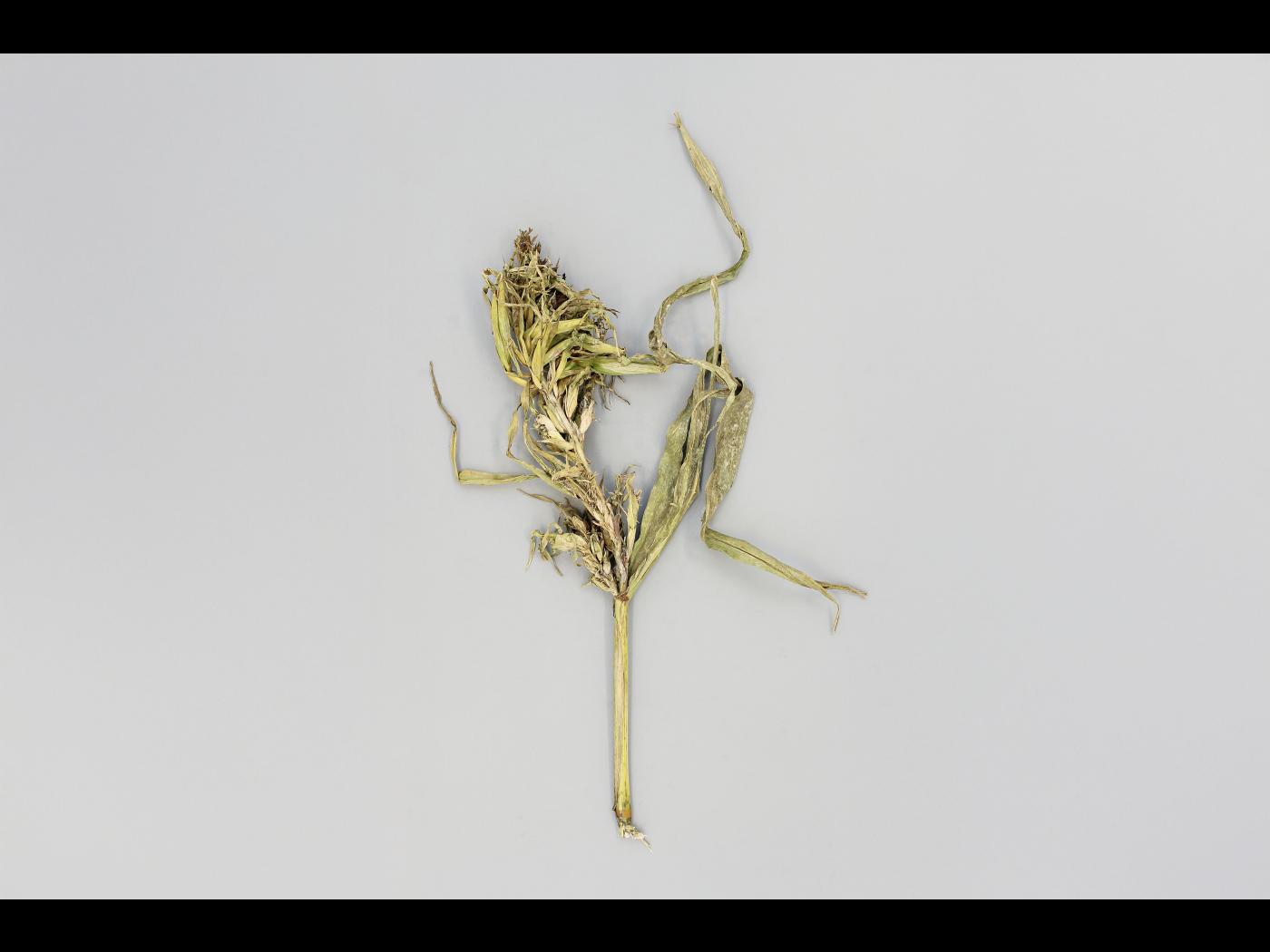 Description: La panicule de maïs est complètement déformée. Il y a une prolifération de tissus foliaires au lieu des épillets habituels. Le même phénomène est observé sur l'épi. Le résultat des tests de laboratoire n’a pas permis de détecter le champignon Sclerophthora macrospora, responsable du mildiou (''crazy top'') chez le maïs. Par contre les symptômes sont caractéristiques de cette maladie. Notez qu’aucun phytoplasme n’a été détecté des dommages. La conseillère agricole mentionne que moins de 1 % des p… En savoir plus