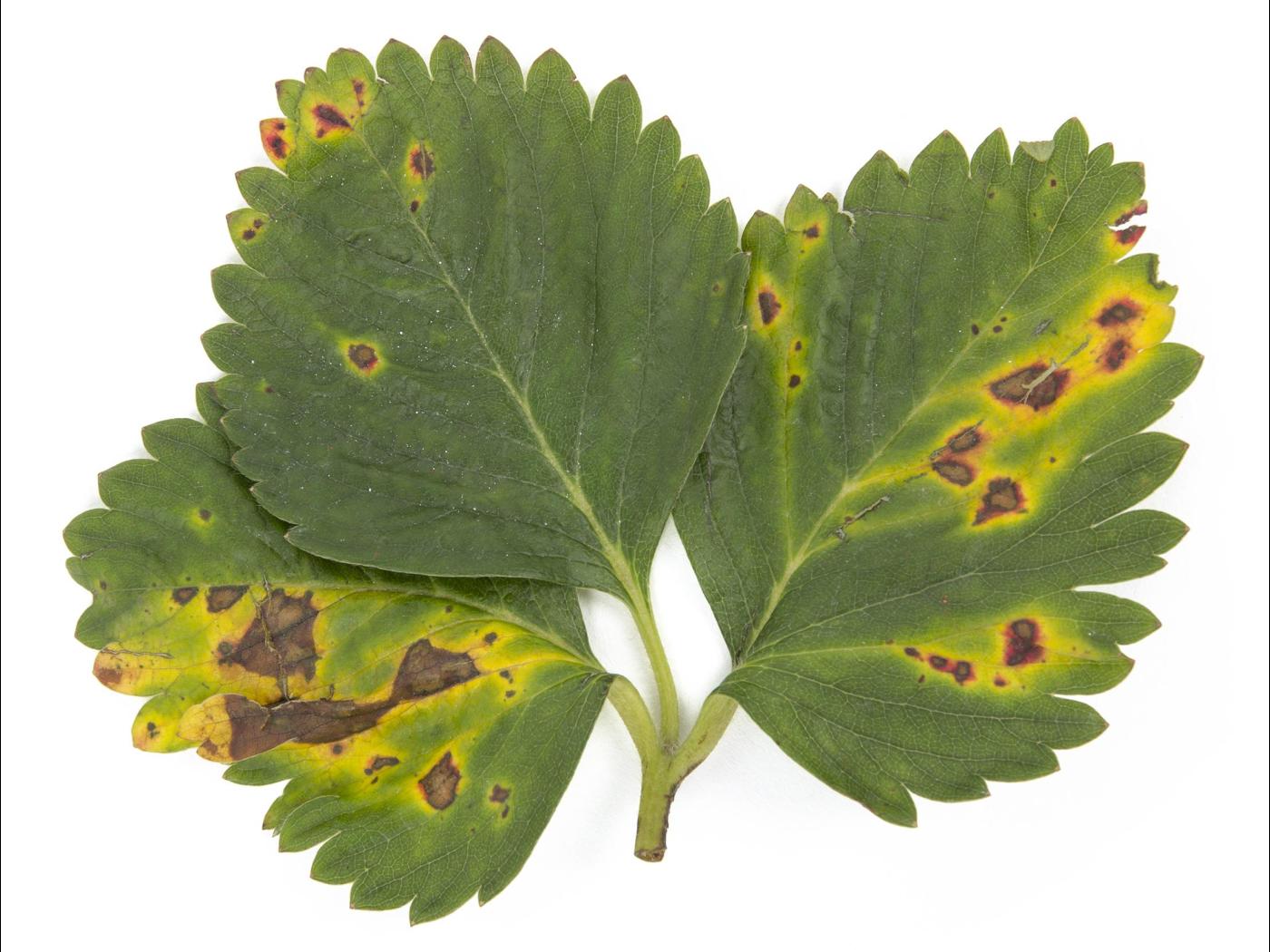 Louws, F. et al. ND. Leaf Blotch. NC State University. En ligne. https://diagnosis.ces.ncsu.edu/strawberry/disorder/detail/leaf-blotch