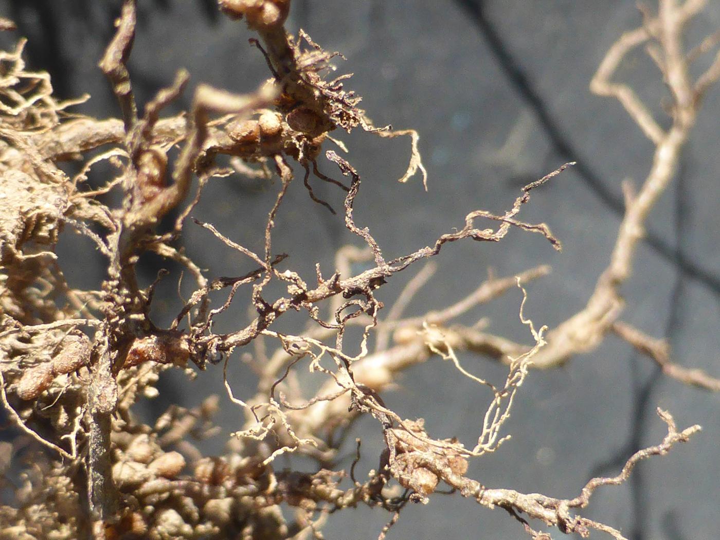 Les Pratylenchus sont des nématodes endoparasites migrateurs, ce qui signifie qu’ils vivent une partie de leur vie dans le sol et l’autre dans les racines. Pratylenchus penetrans est le plus redoutable de ces nématodes. Les Pratylenchus attaquent plus de 400 plantes hôtes et de nombreuses mauvaises herbes. Au Québec, ils attaquent essentiellement les petits fruits (fraisiers, framboisiers) et les plantes maraîchères. Avec l’augmentation graduelle du nombre de plantations depuis quelques années, on en recense de plus en plus dans l’argousier. Les arbustes peuvent supporter de grandes populations sans nécessairement présenter de symptômes. Cependant, lorsque les nématodes sont en complexe avec d’autres organismes phytopathogènes ou un autre facteur aggravant (compaction, gel hivernal, sol pauvre, sécheresse importante, dommages mécaniques au tronc ou forte compétition avec la végétation environnante), des baisses de rendement sont observées et la durée de vie des plants est raccourcie. En outre, la présence d’une population de Pratylenchus penetrans dans le sol en plus d’organismes phytopathogènes comme Pythium, Fusarium et Verticillium peut accentuer le dépérissement du système racinaire des plants. Les lésions aux racines causées par le nématode sont une porte d’entrée pour les maladies. Au champ, les dommages apparaissent en foyer et peuvent suivre le trajet de la machinerie si les populations ont été dispersées par celle-ci.