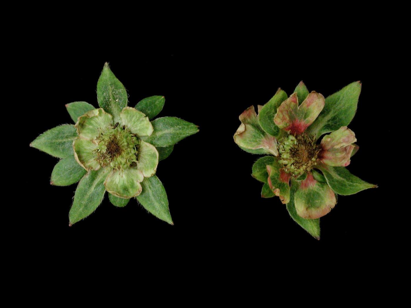 Fleur : présence de pétales verts qui deviennent rouges.