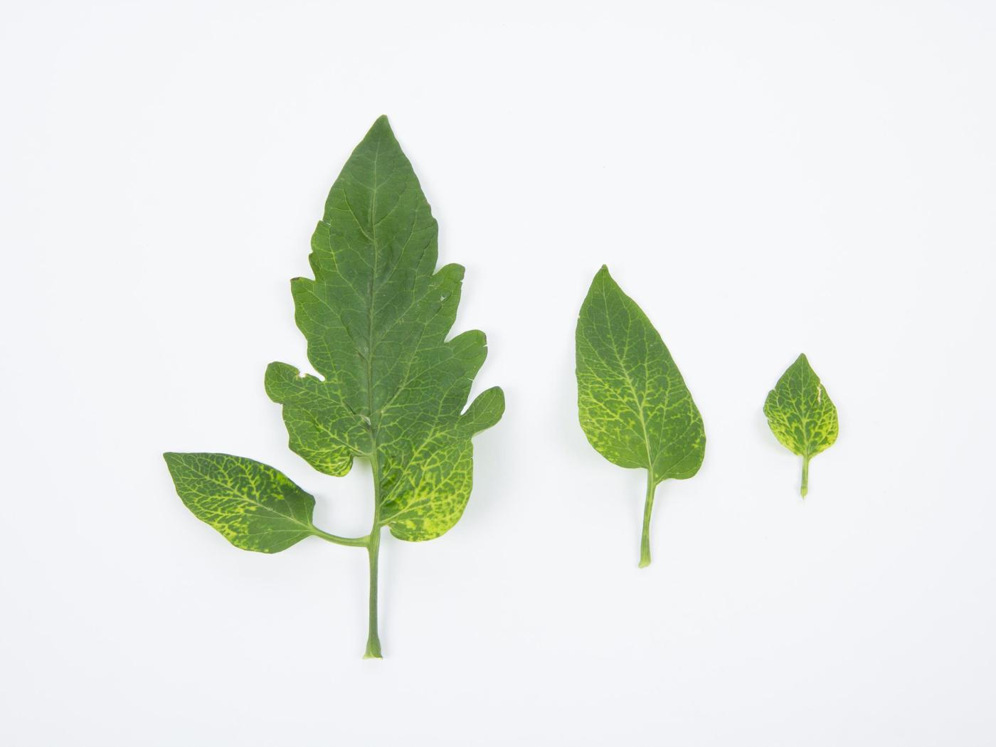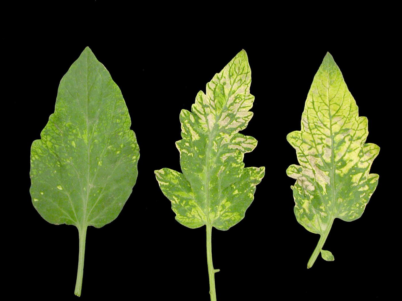 Légende: Mosaïque d'intensité différente sur folioles de tomate