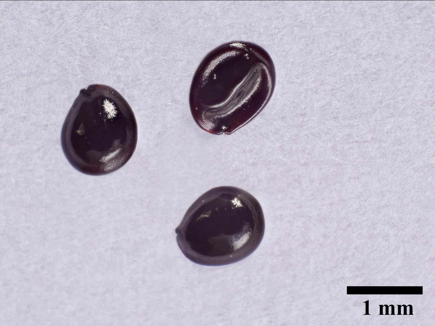 Les fruits sont des utricules qui s’ouvrent le long d’une ligne circulaire transversale et qui contiennent une seule graine. Cette dernière est de forme ovale à elliptique, de couleur brun foncé, luisante, légèrement aplatie et mesure de 1 à 1,3 mm de diamètre.