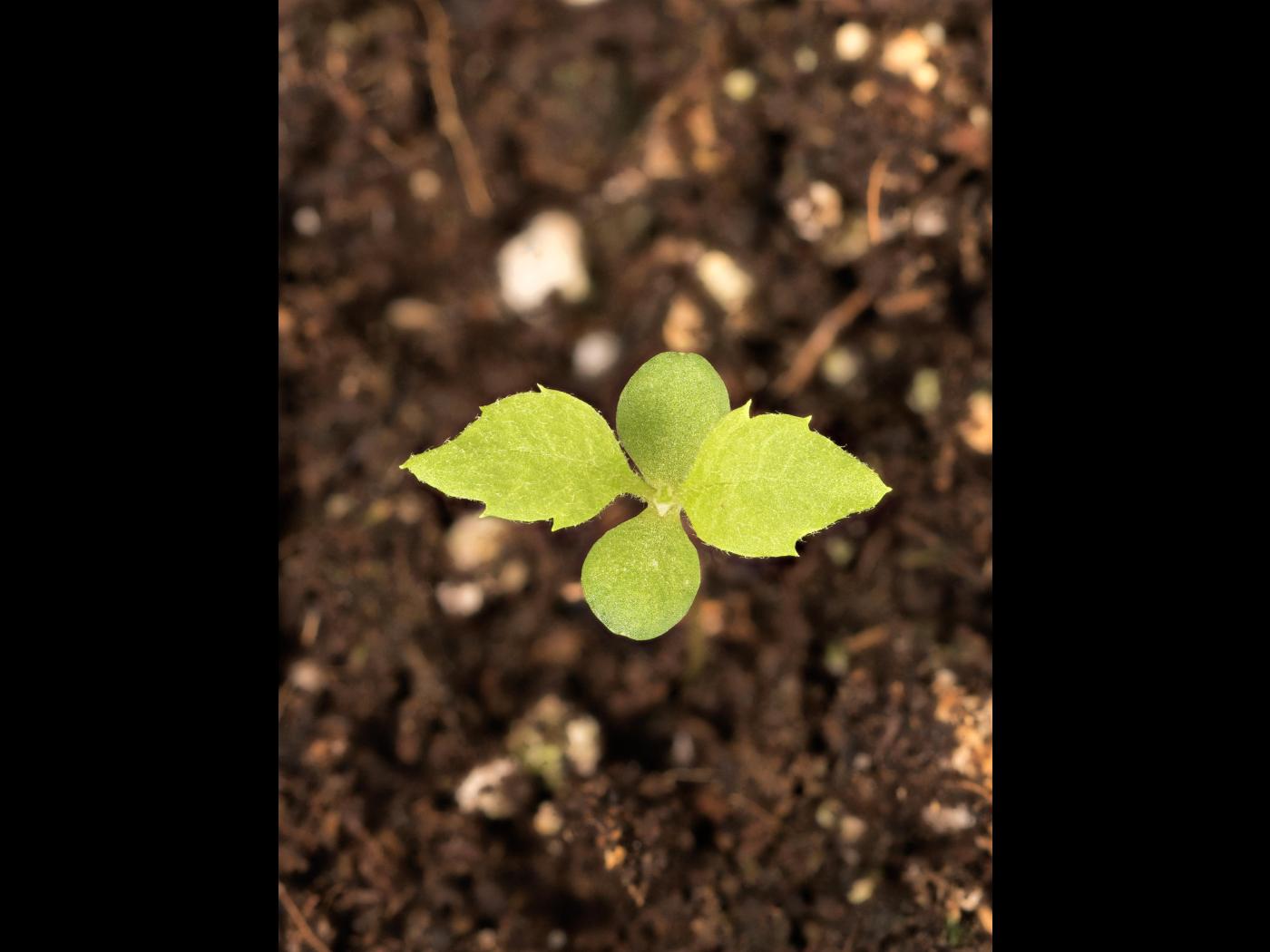 La plantule se compose de feuilles alternes qui forment une rosette. Les cotylédons sont de forme orbiculaire à ovée, sans pétiole et mesurent de 1,5 à 3 mm de longueur. Les premières feuilles sont de forme arrondie à ovale, généralement avec 2 ou 3 dents et sont terminées par une pointe. Des pousses végétatives peuvent provenir de courts rhizomes ou du collet des anciennes pousses.
